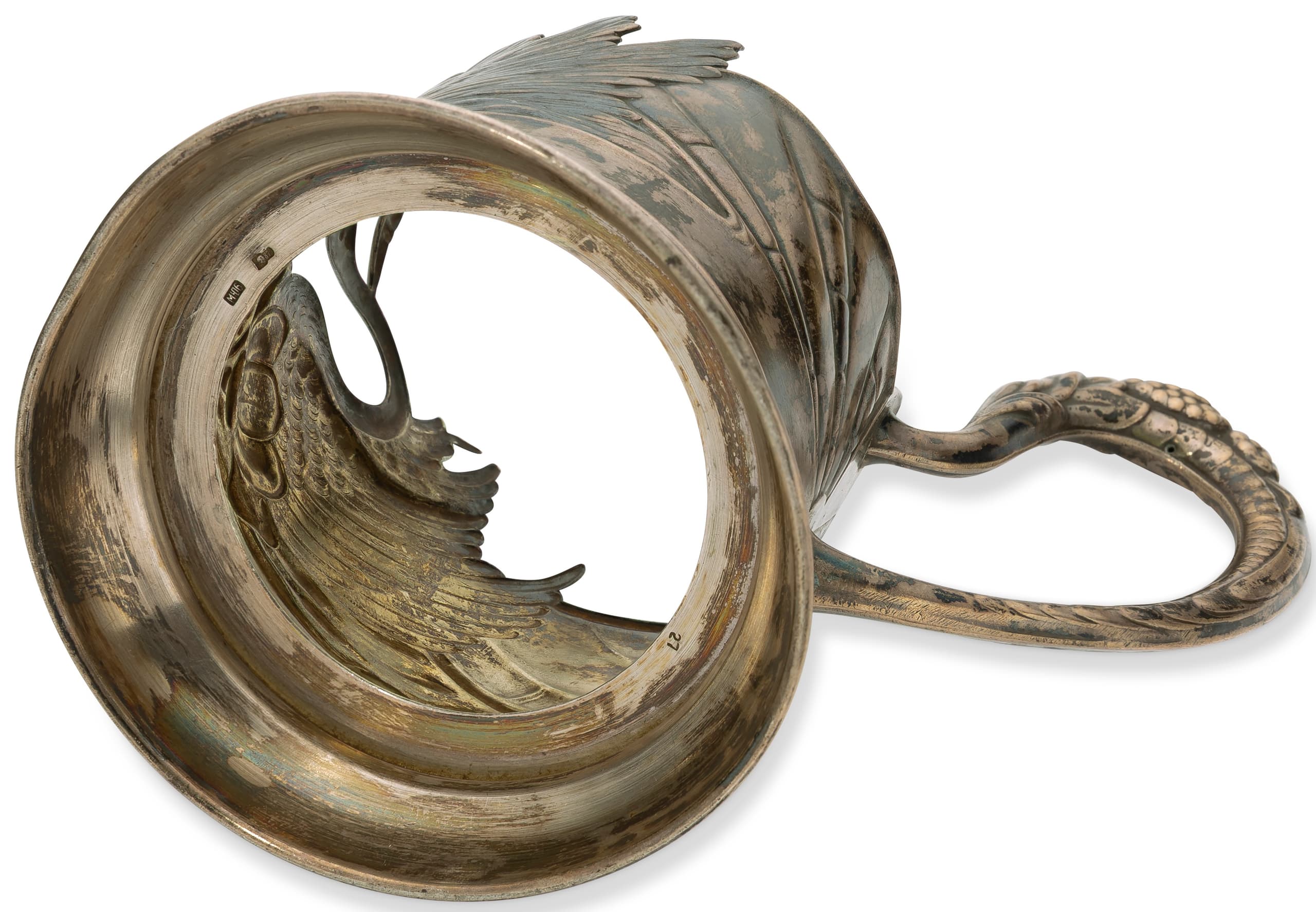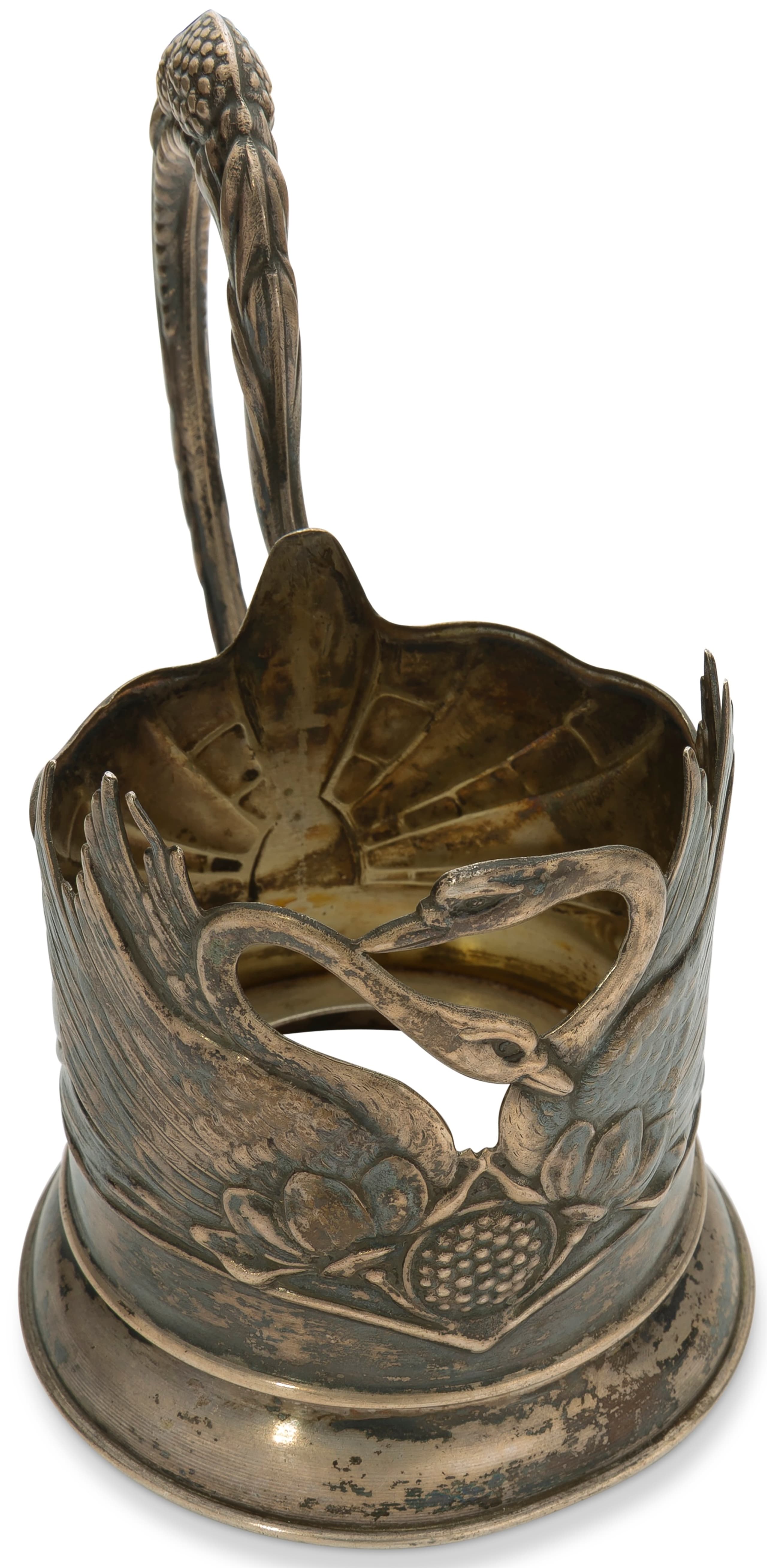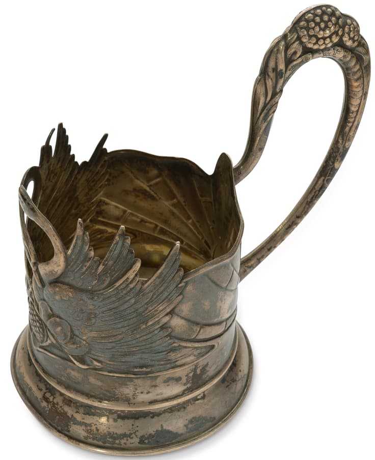 SOVIET SILVER TEA GLASS HOLDER WITH SWAN MOTIF