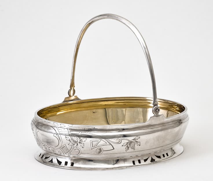 SILVER RUSK BASKET IN ART NOUVEAU STYLE WITH FLORAL DECORATION