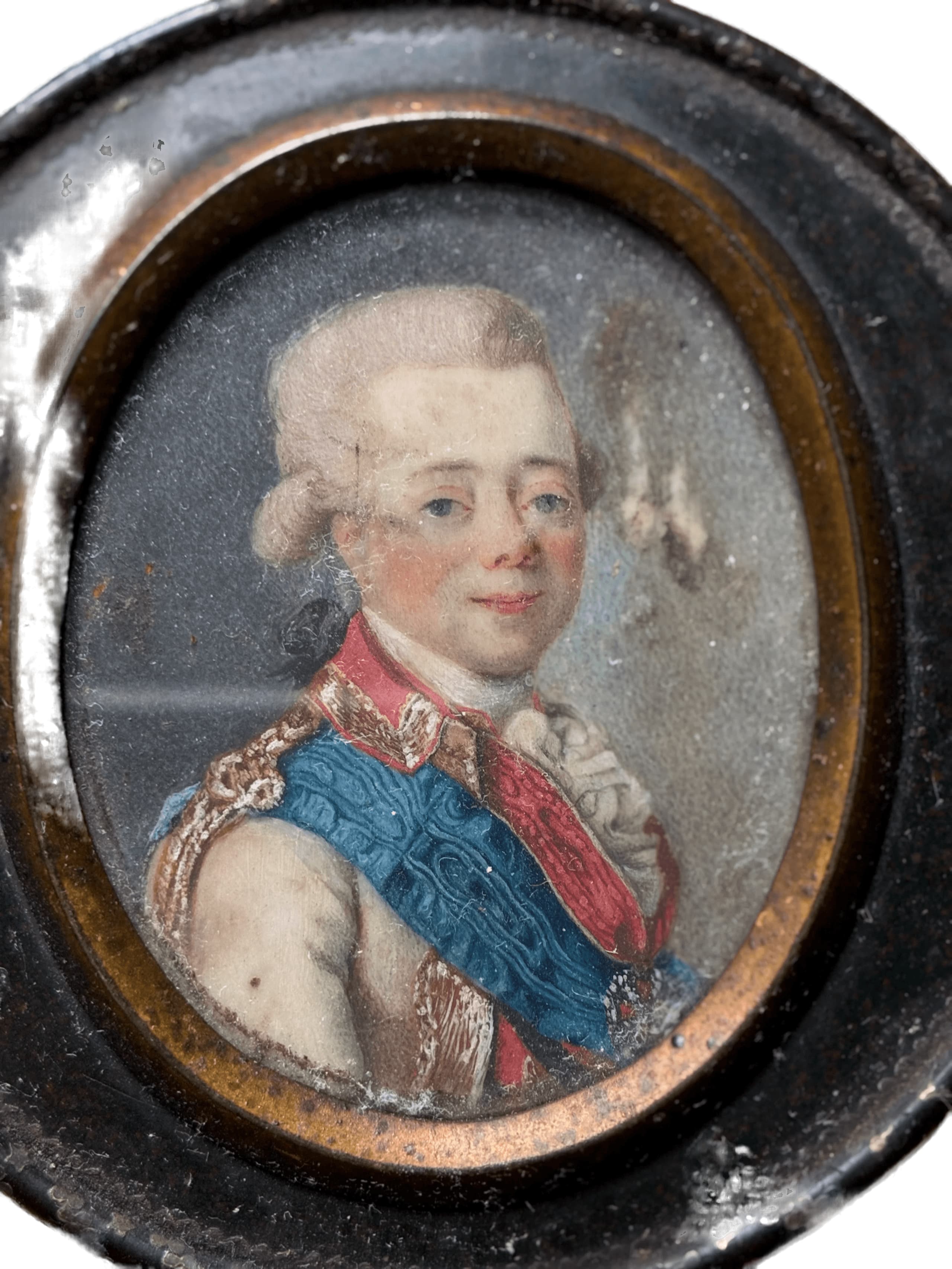 The miniature closely resembles the Portrait of Grand Duke Pavel Petrovich by an unknown artist in the collection of the State Hermitage Museum, St Petersburg.