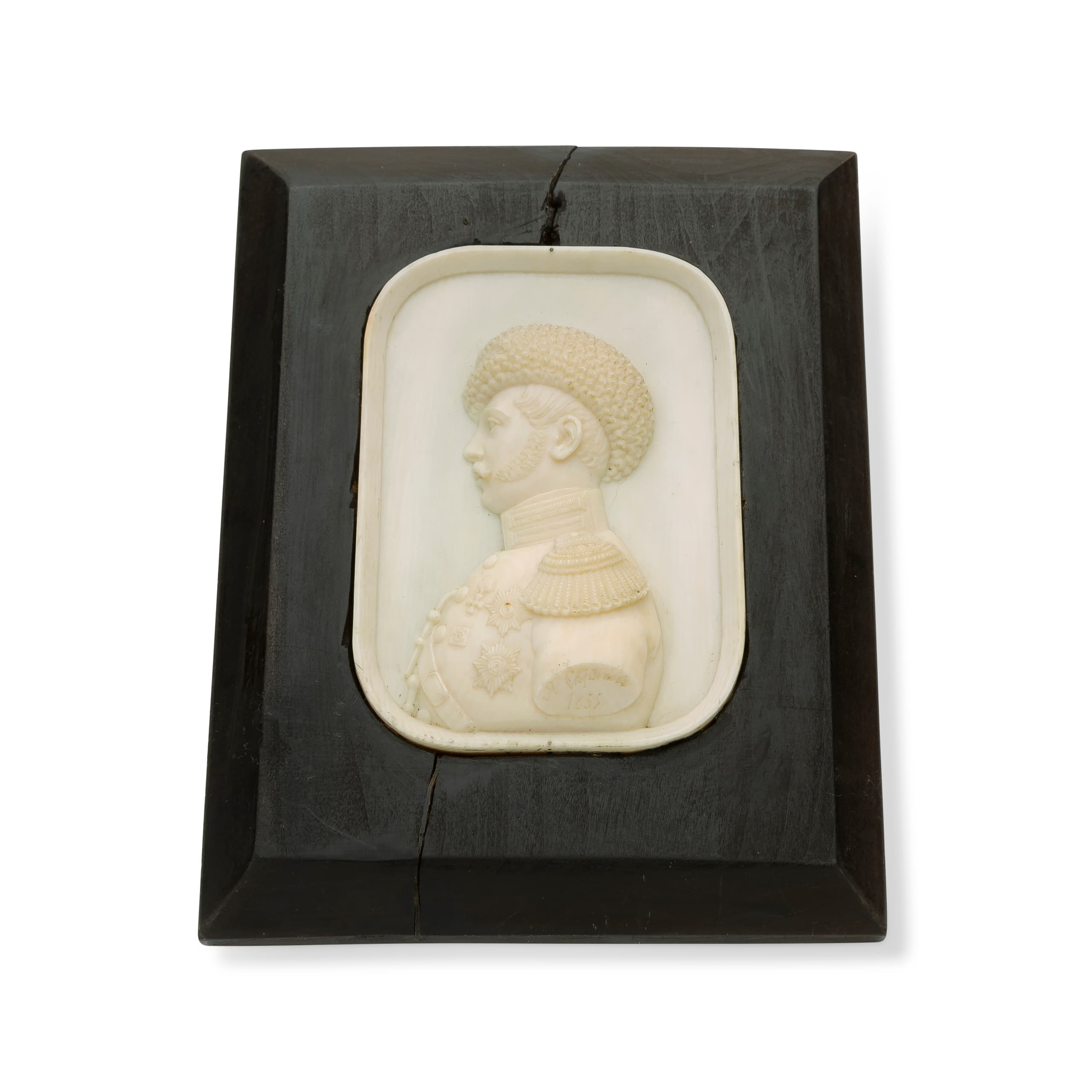 The fretwork profile of Emperor Alexander II is based on a watercolour drawing by Franz Krüger. Alexander II is depicted in the king’s uniform of the Erivansky Carrabineer Regiment with epaulettes, an aglet and orders of St Andrew, first class order of St Vladimir, fourth class order of St George and a badge for fifteen-year faithful service.
