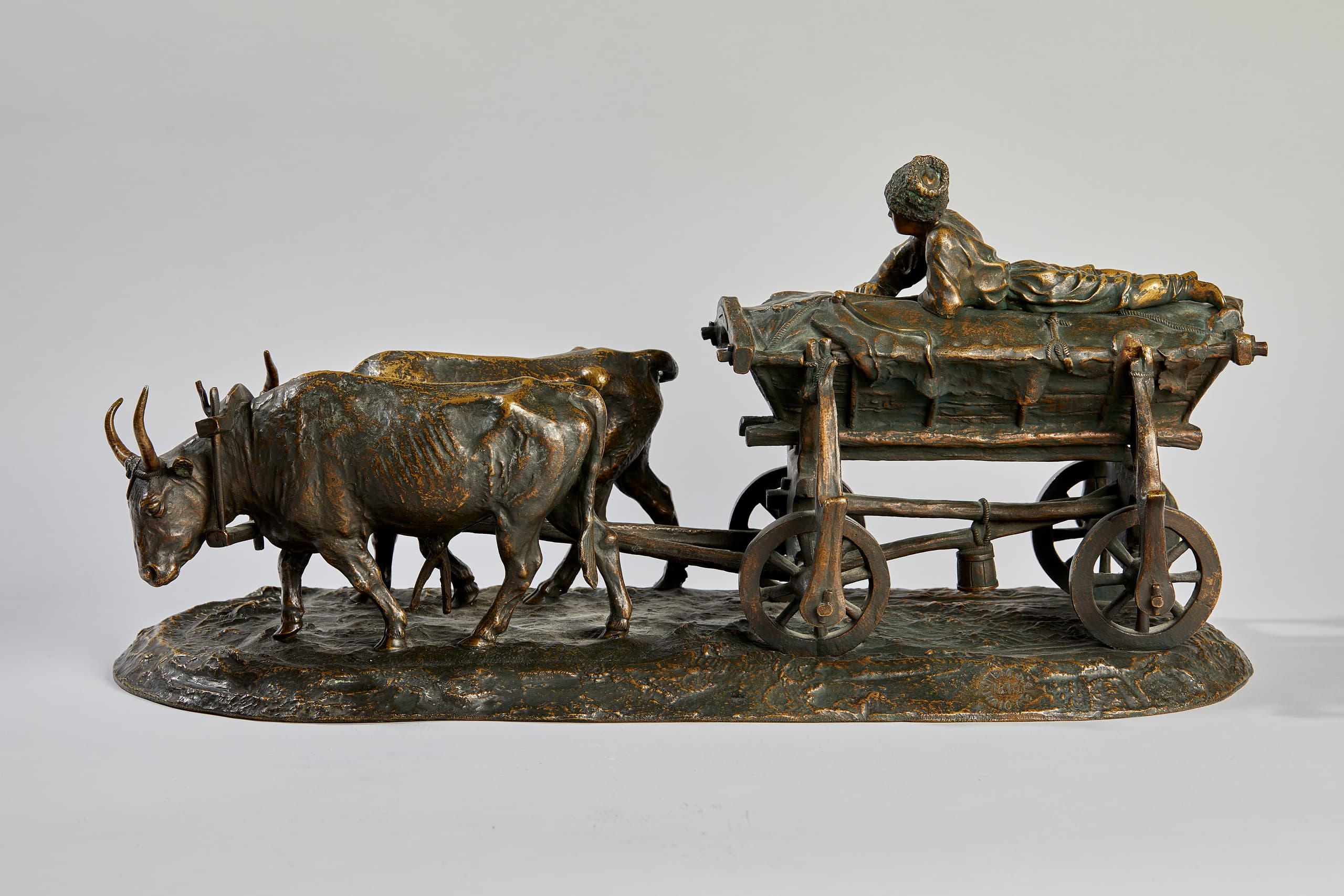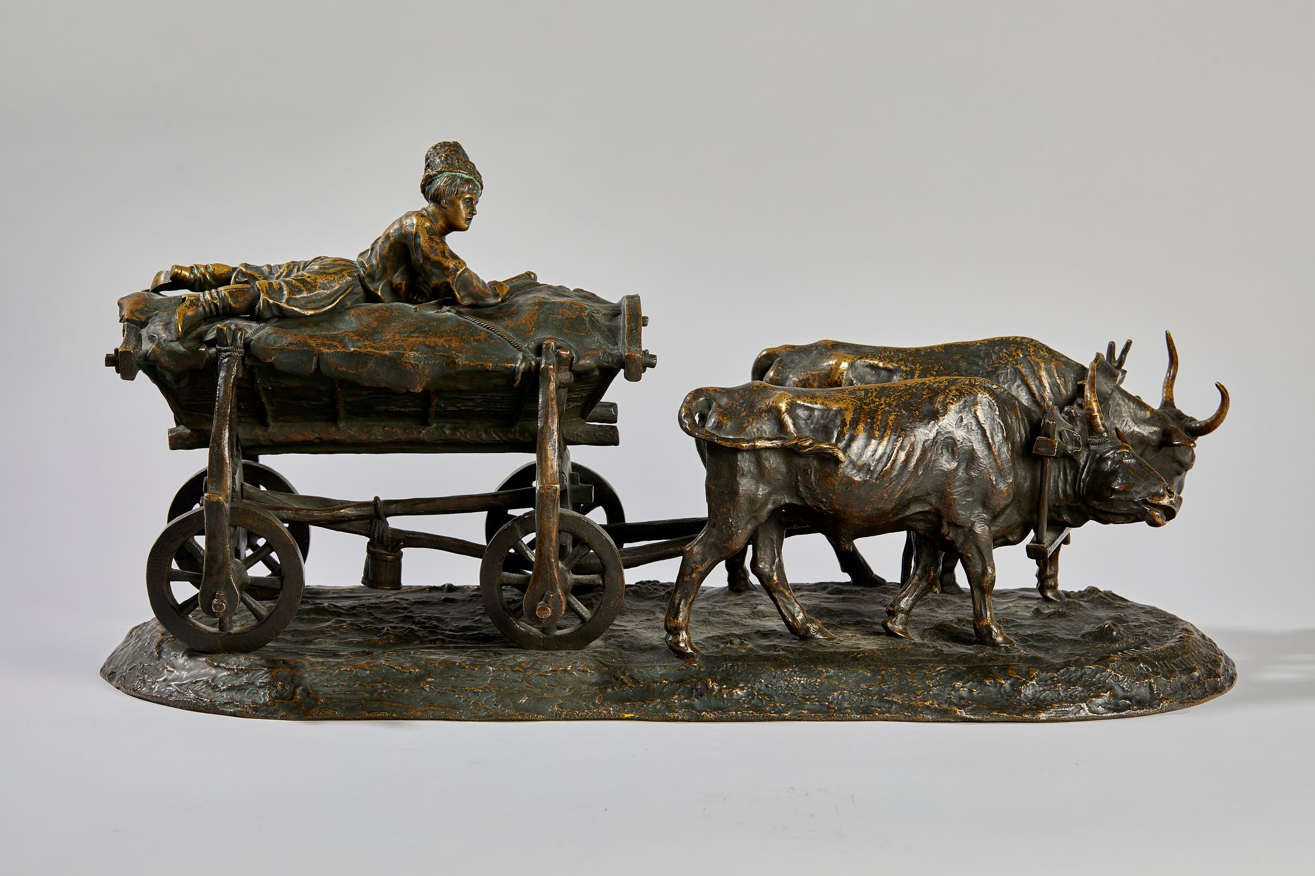 EVGENI ALEXANDROVICH LANCERAY (1848-1886) Ukrainian chumak driving oxes
