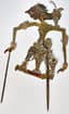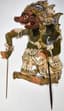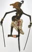 each fashioned from polychrome-painted leather with wooden rods, depicting traditional characters from Javanese shadow theatre