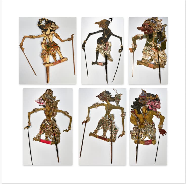 SET OF OF SIX WAYANG KULIT SHADOW PUPPETS, INDONESIA, 20TH CENTURY