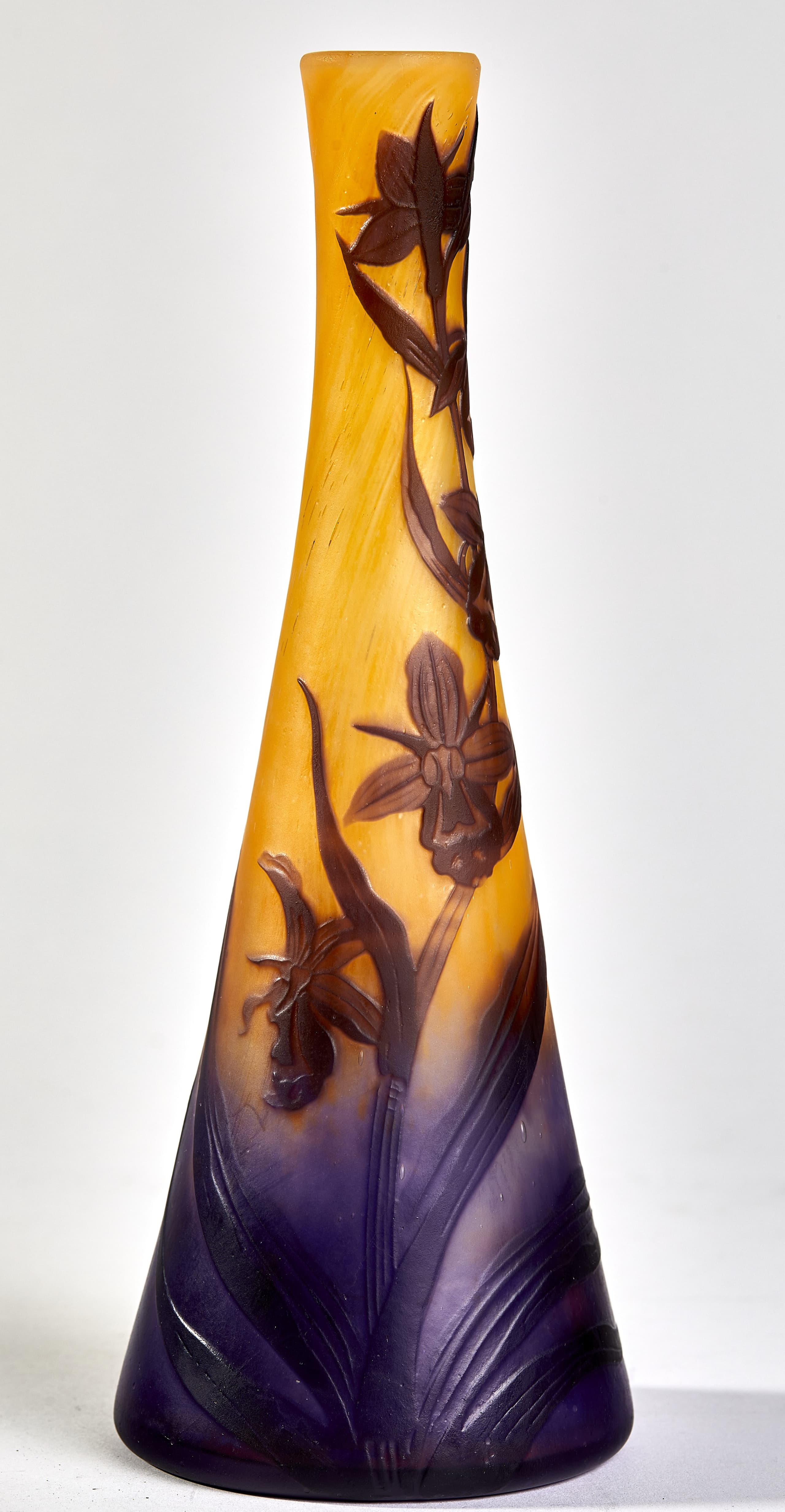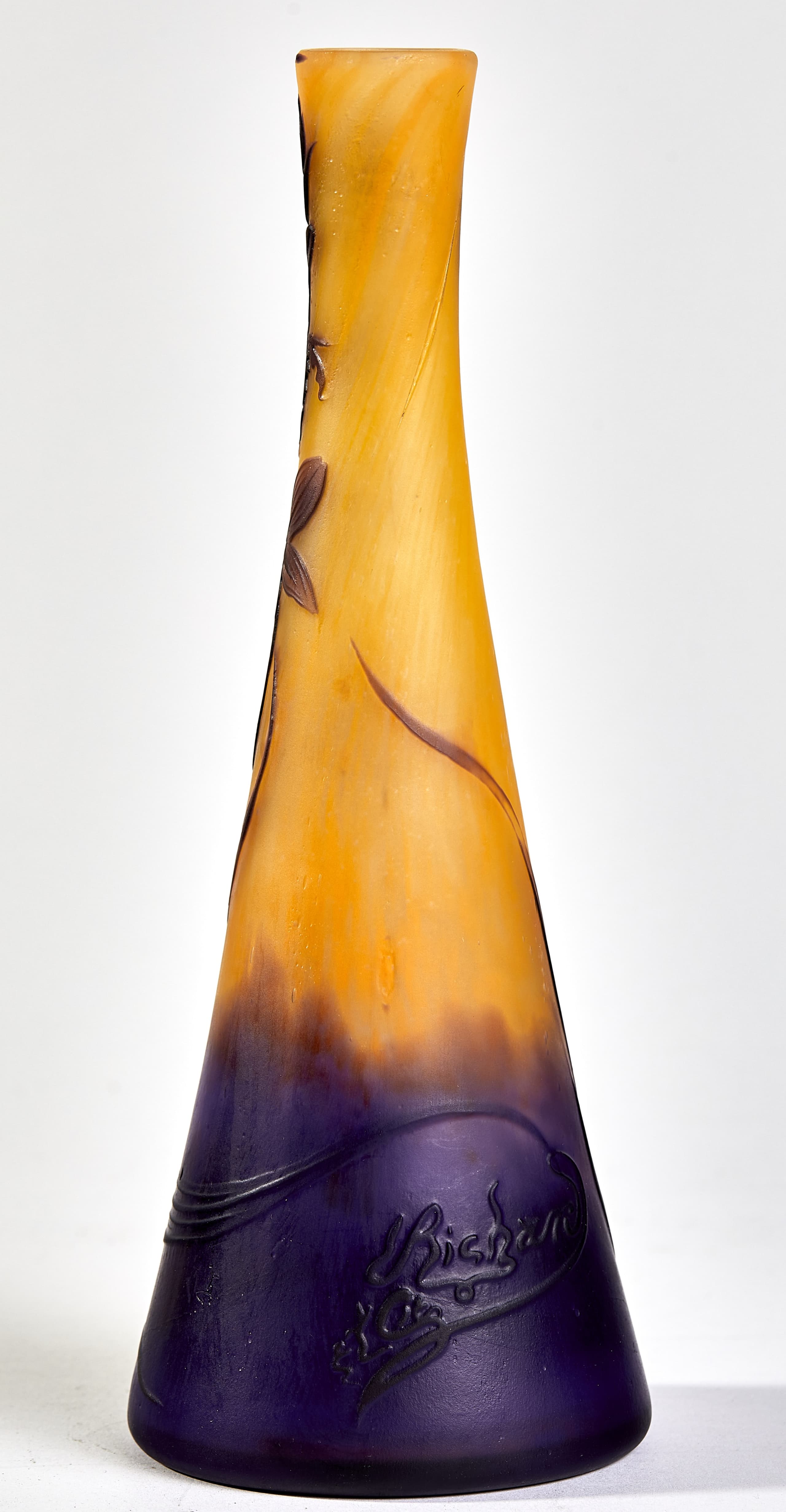 yellow and purple cameo glass with floral decoration