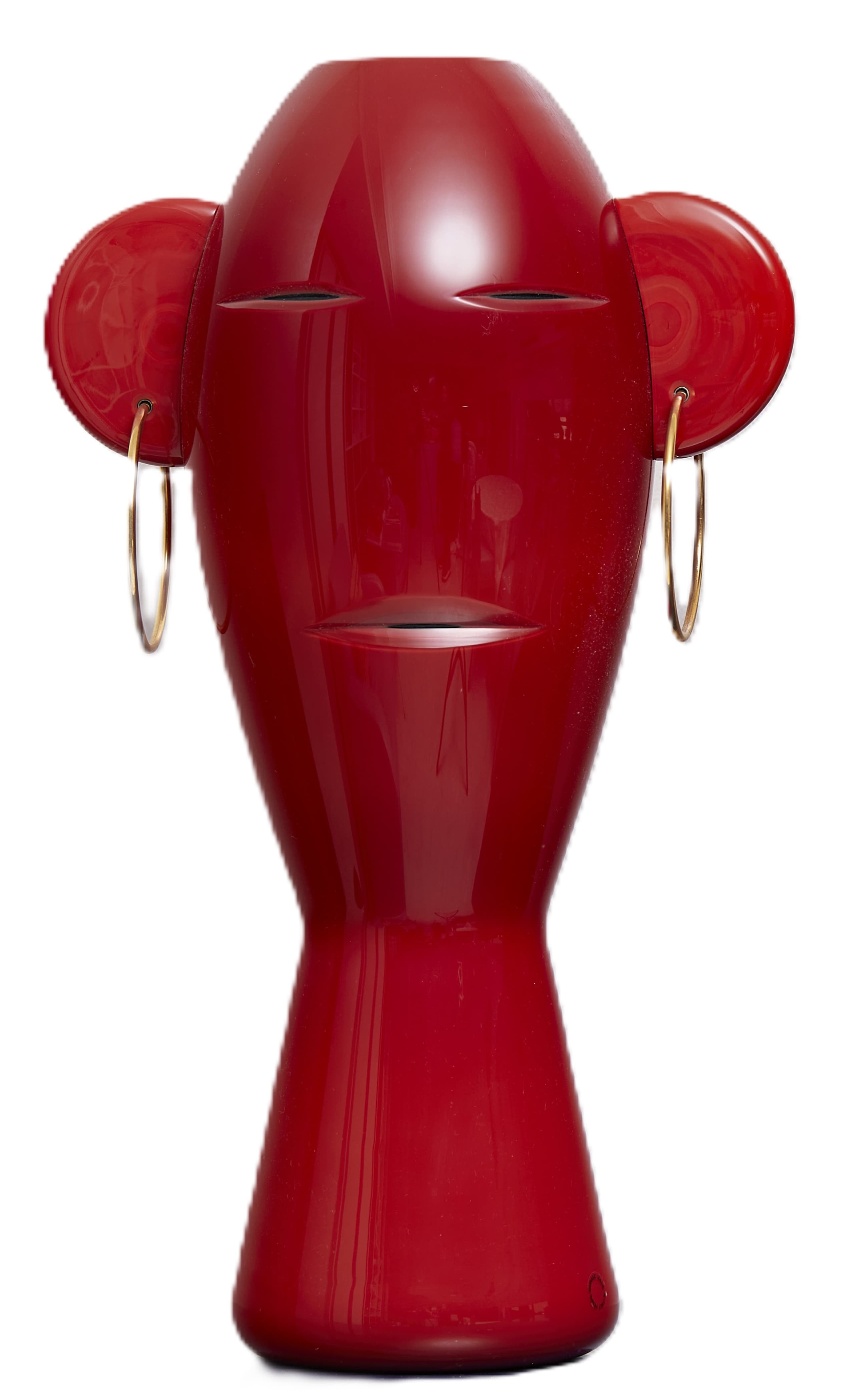 Soldato di Vetro is coral red with a black interior. Other examples are in the collections of Fondation Cartier, Paris, Venini Museo, Murano, and Alessandro Mendini.