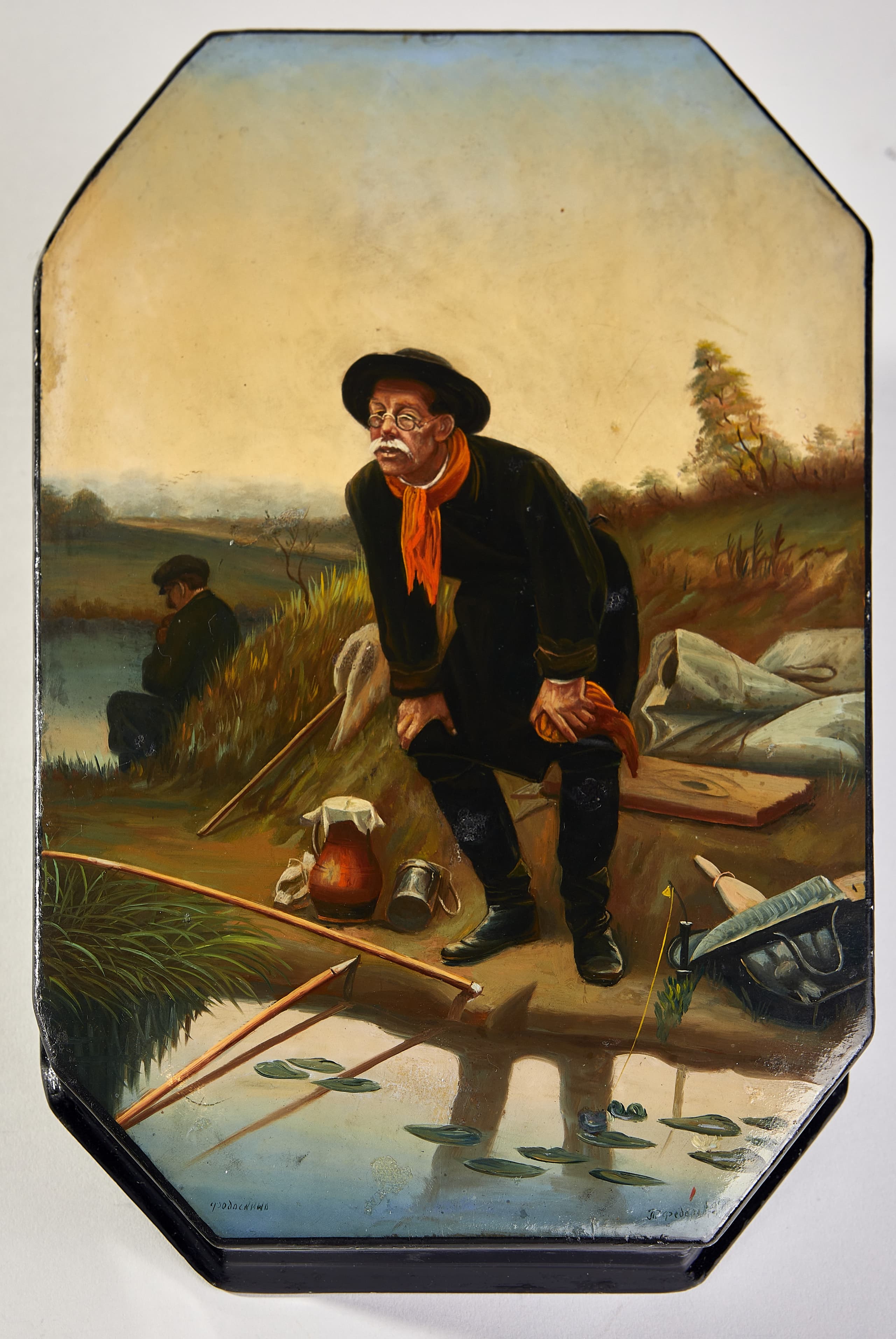 The design is after the painting ‘Fisherman’ by Vasily Perov (1834- 1882).