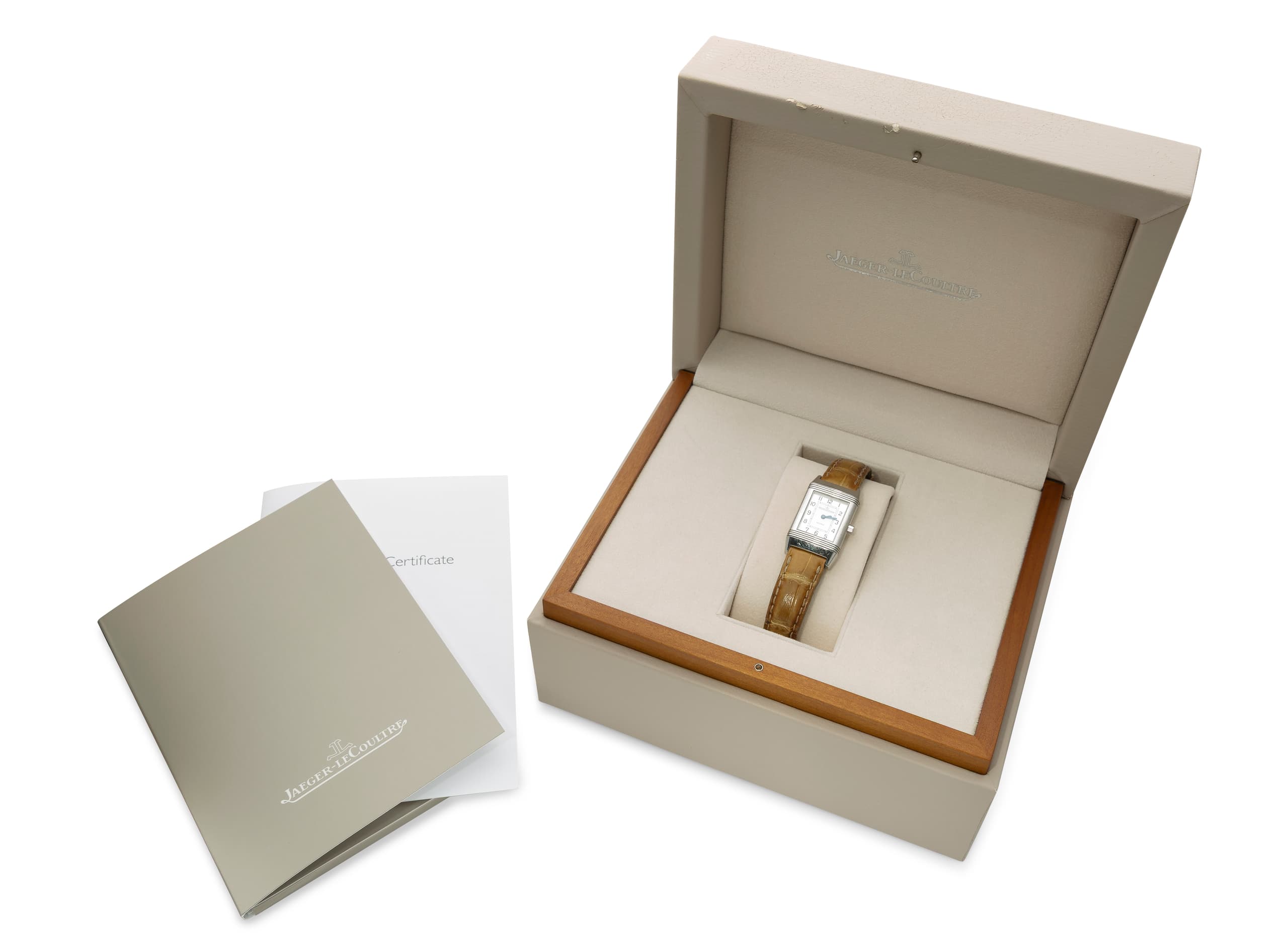 Jaeger-Lecoultre ‘Reverso’ watch with quartz movement in steel on a leather starp with double folding clasp, the reverse is engraved with a heart