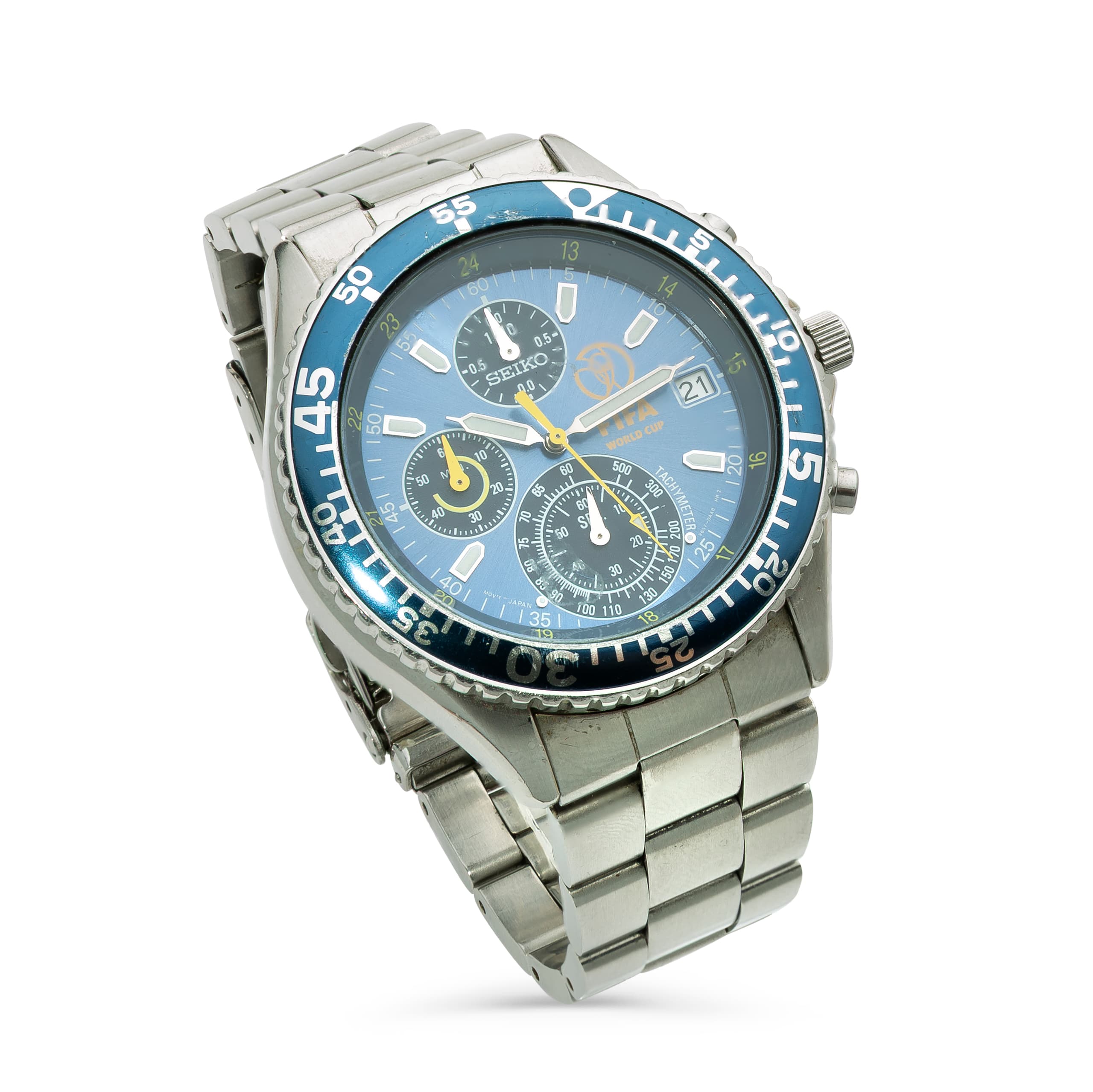 Seiko chronograph watch with aitomatic movement in steel, limited edition for the Fifa World Cup 2002 in South Korea and Japan