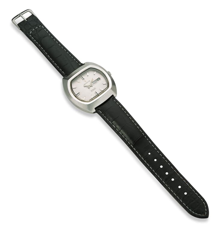 Invicta watch with an automatic movement made in steel on a leather strap with pin buckle. Silver dial, date at 3 o’clock