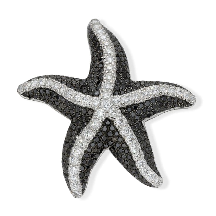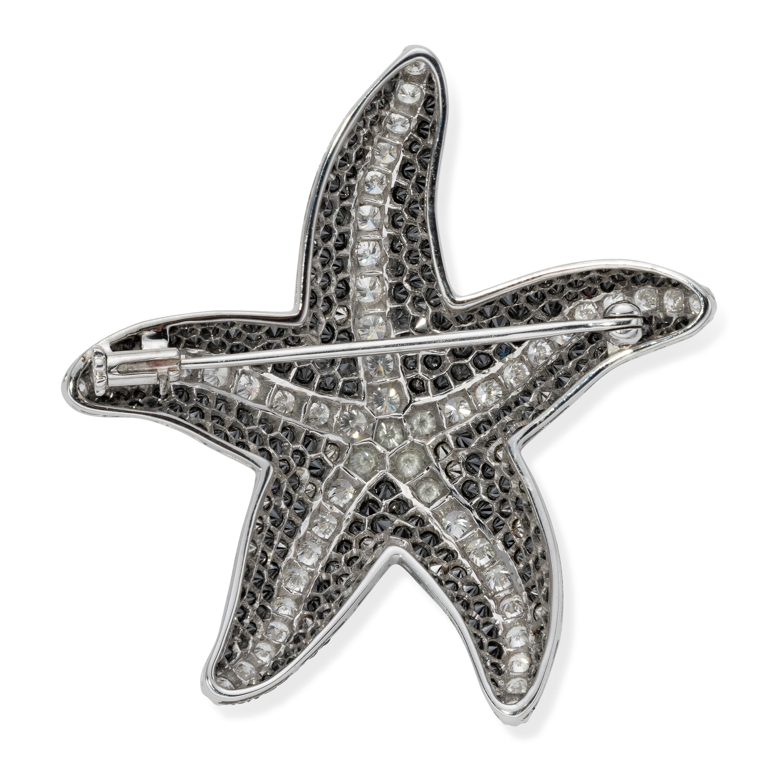 brooch in 18K white gold in the shape of a starfish integrally paved with black and white brilliant-cut diamonds weighing approximately 3,50 ct.