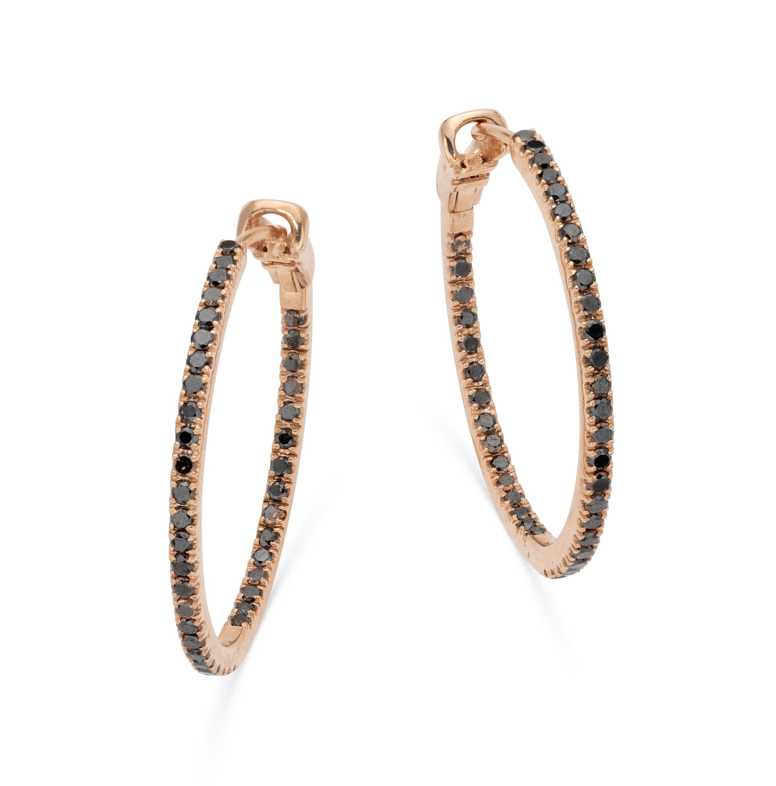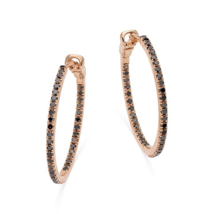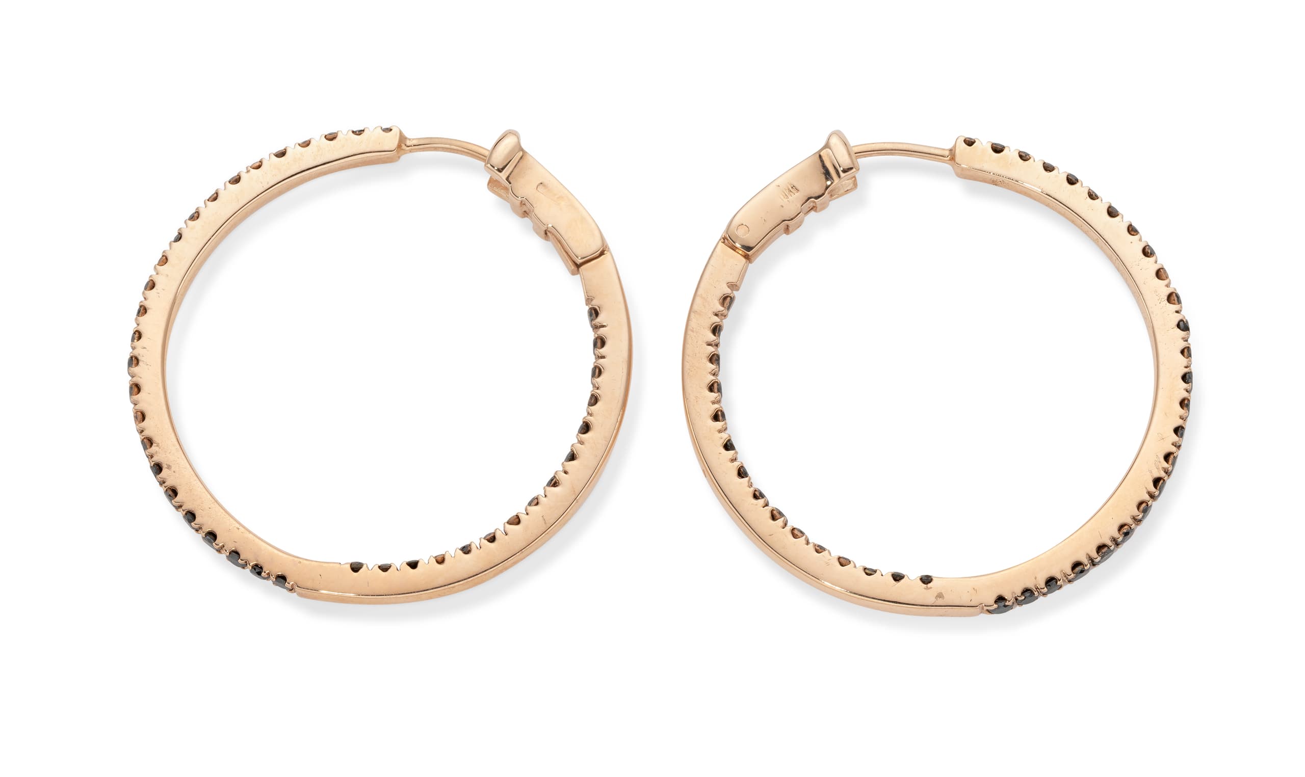 a pair of hoops in 18k rose gold set with black brilliant-cut diamonds weighing approximately 1ct. Hallmark : ‘18KT’ D. 3,9 cm gross weight : 13,8 gr.