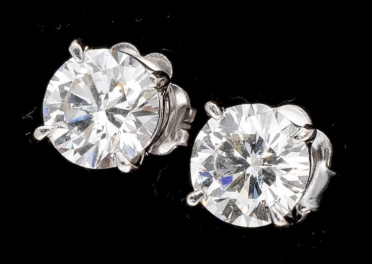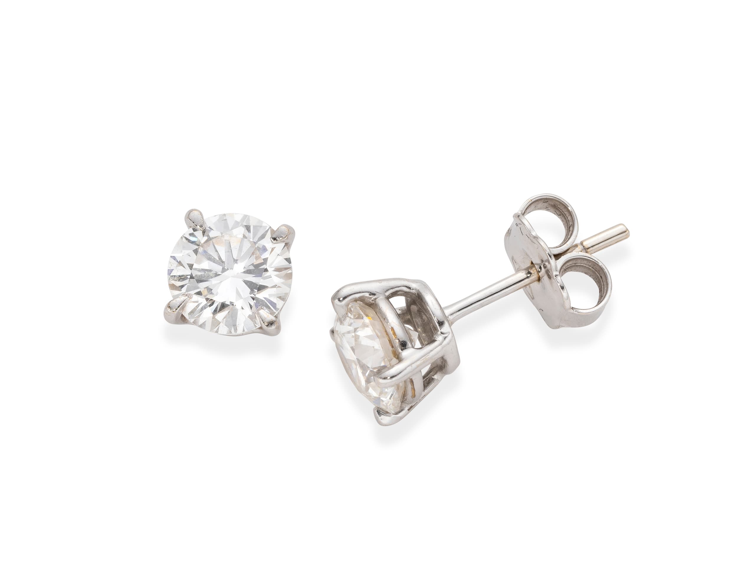 pair of 18k white gold stud earrings, each set with a brilliant-cut diamond weighing approximately 1.00 ct., VS2 and 1.02 ct., VS1 Certificate GIA total gross weight: approximately 2.3 gr.