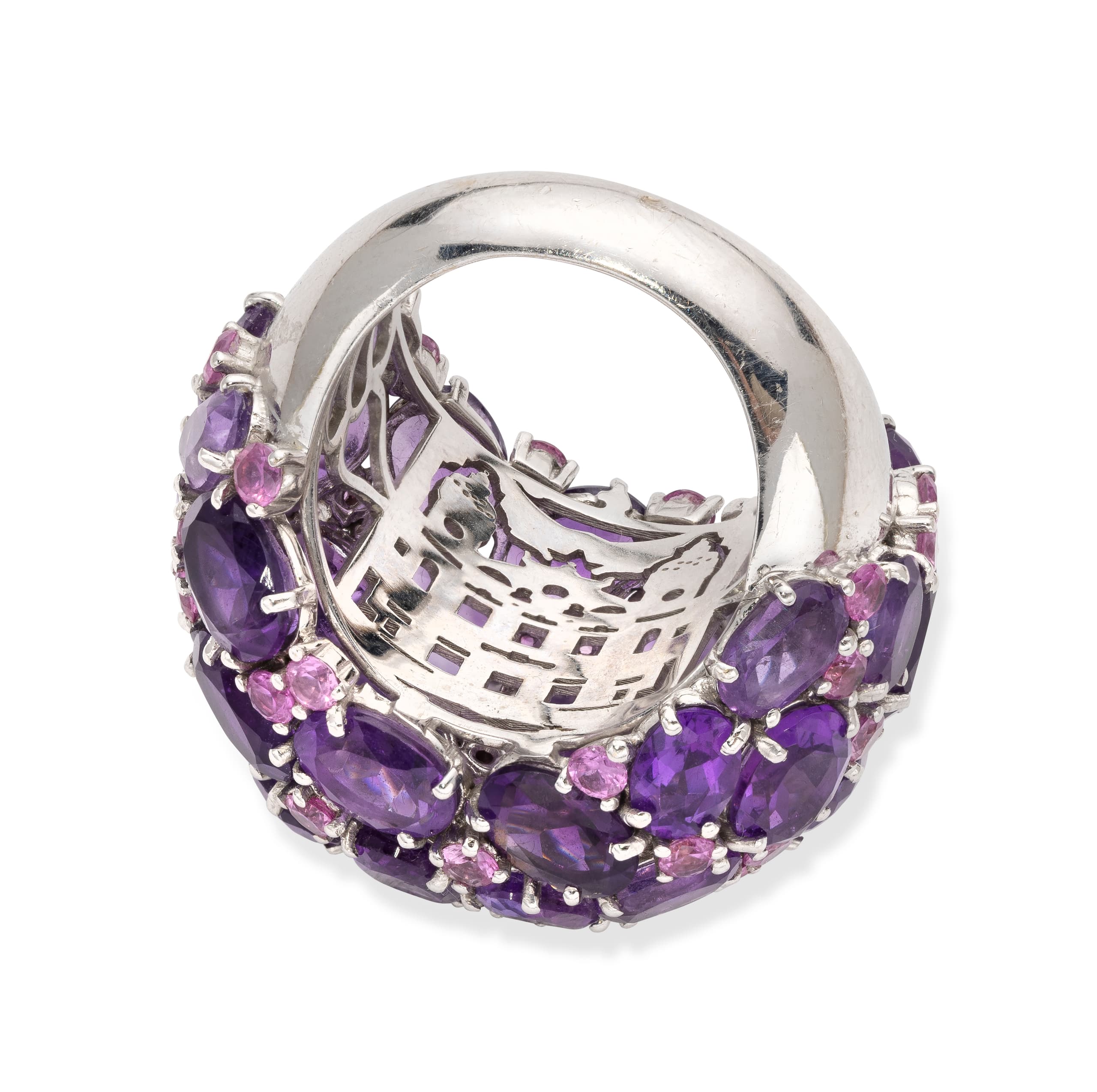 cocktail ring made in 18k white gold paved with amethyst weighing approximately 4 ct. and ponctuated with pink sapphires weighing approximately 0.8 ct.
