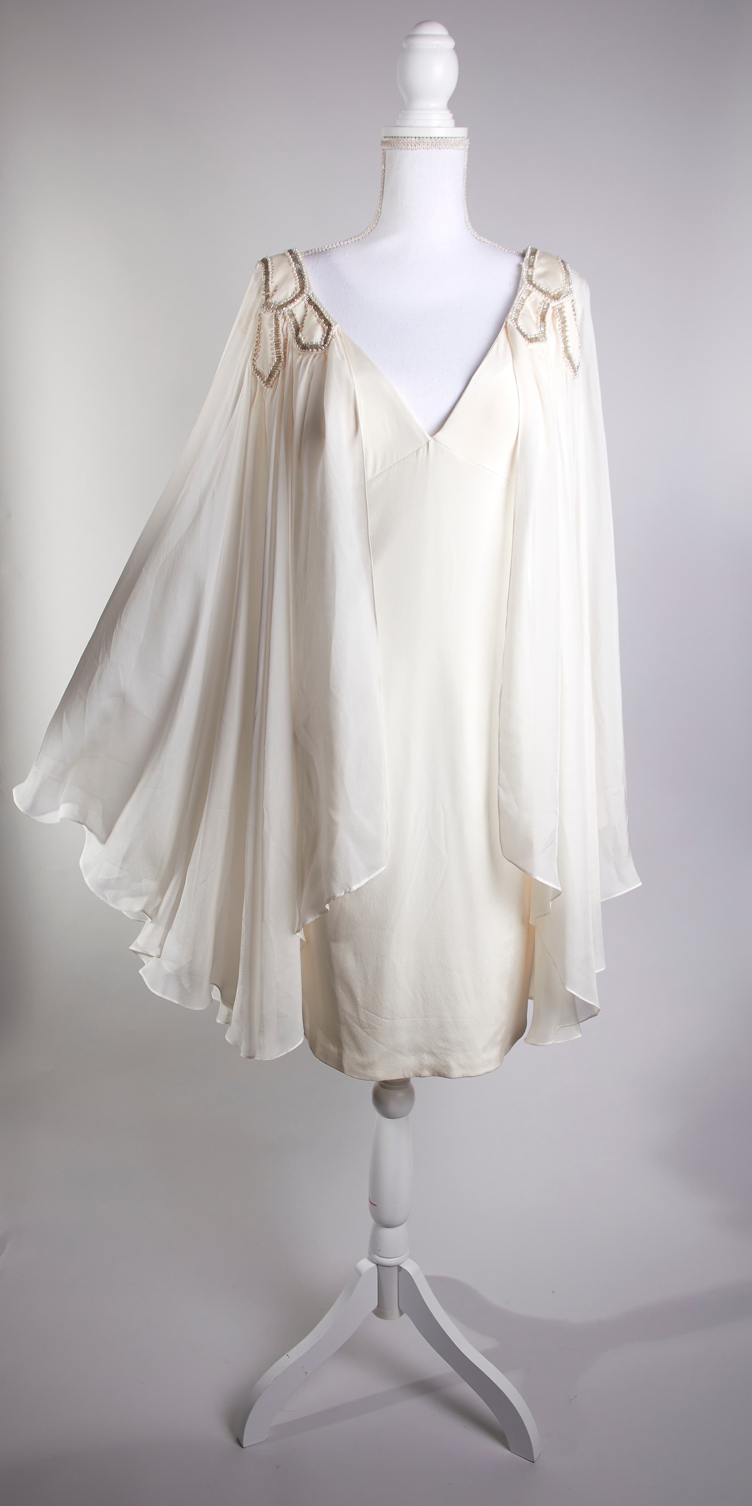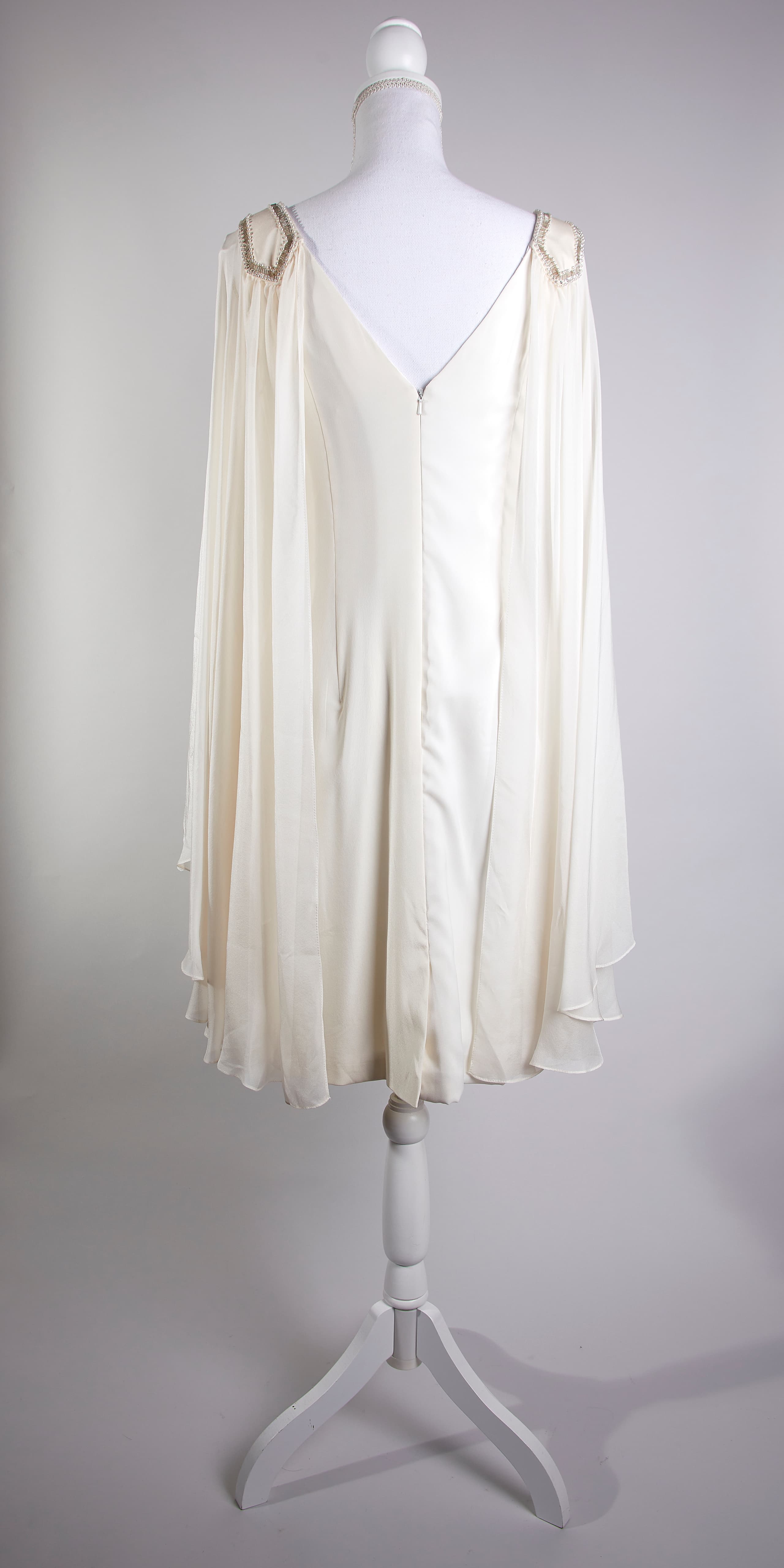 silk summer dress with embroidery and long open sleeves 100% silk labelled Ugo Zaldi Bride Collection size 42 as new, never worn