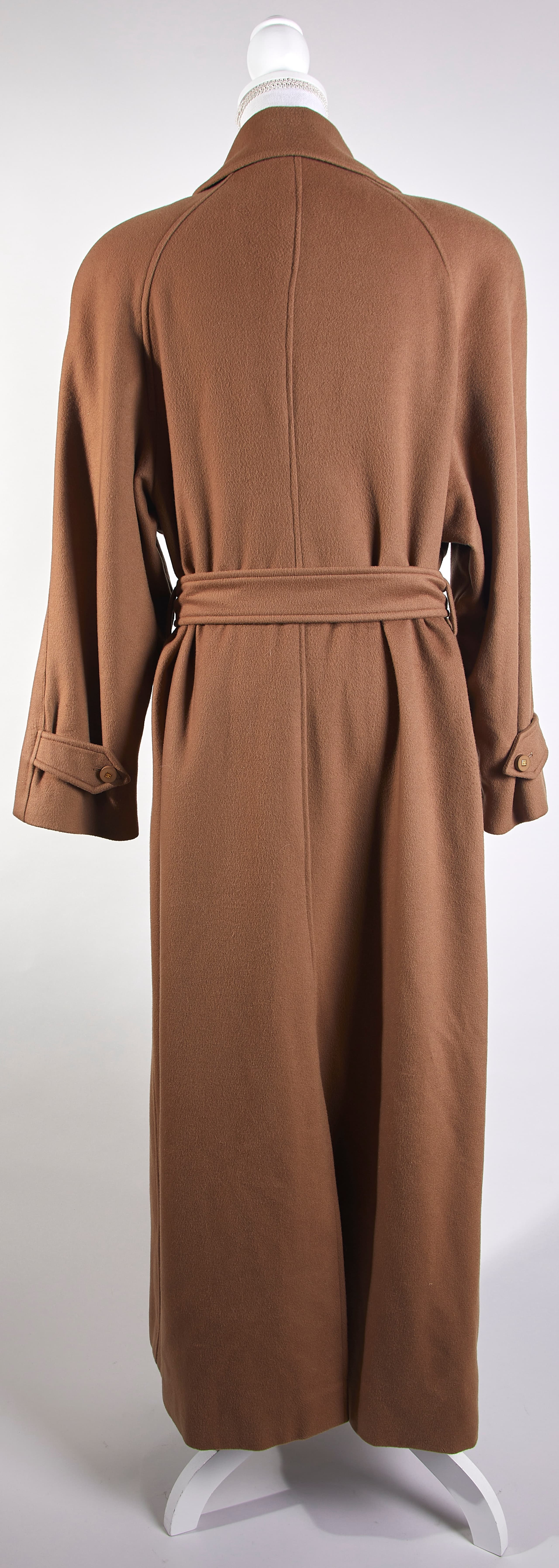 beige 100 % cashmere long coat with belt and two buttoned side pockets