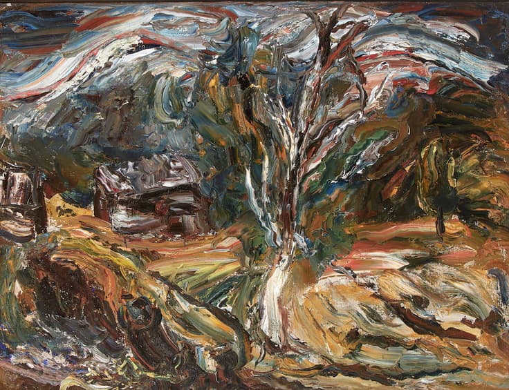 signed, dated and titled in Cyrillic ‘A.D. Drevin 1930 Altai. Dry birch’ (on the reverse)