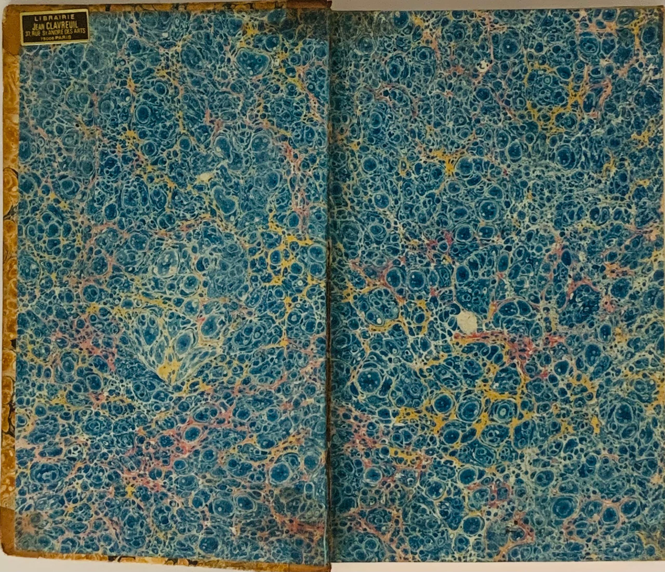 Blond half calf with corners, gilt fillets, smooth decorated spine, yellow speckled edges.