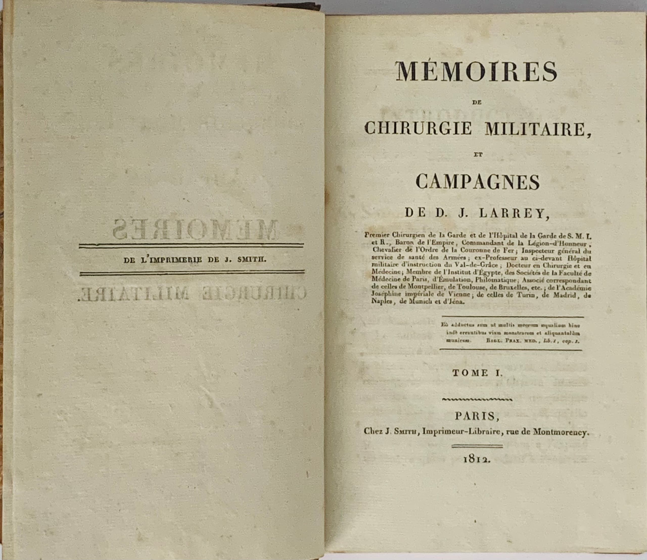 LAREY DOMINIQUE-JEAN (1766-1842) Mémoires de chirurgie militaire, et campagnes. [Memoirs of Military Surgery and Campaigns] Paris: J. Smith, 1812–1817.