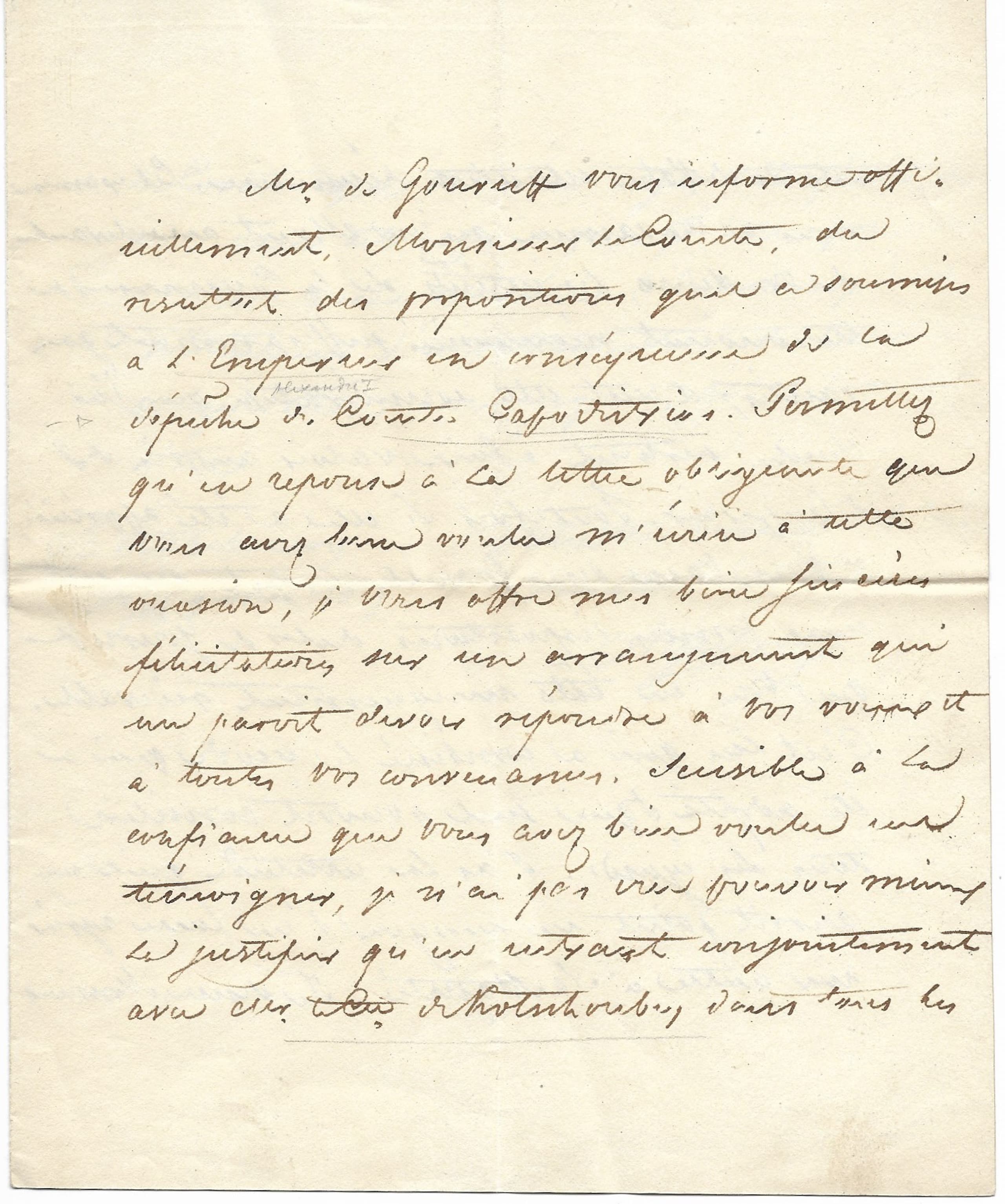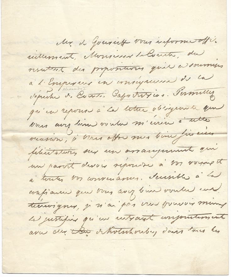 M. de Gourieff informed him of the result of the proposals he had submitted to The Emperor. Together with the Earl of Kotschoubey, he went into the details of his pecuniary situation, and is convinced that by fulfilling his wishes the interests of the Crown will be sufficiently guaranteed. The emperor therefore approved the proposed arrangement.