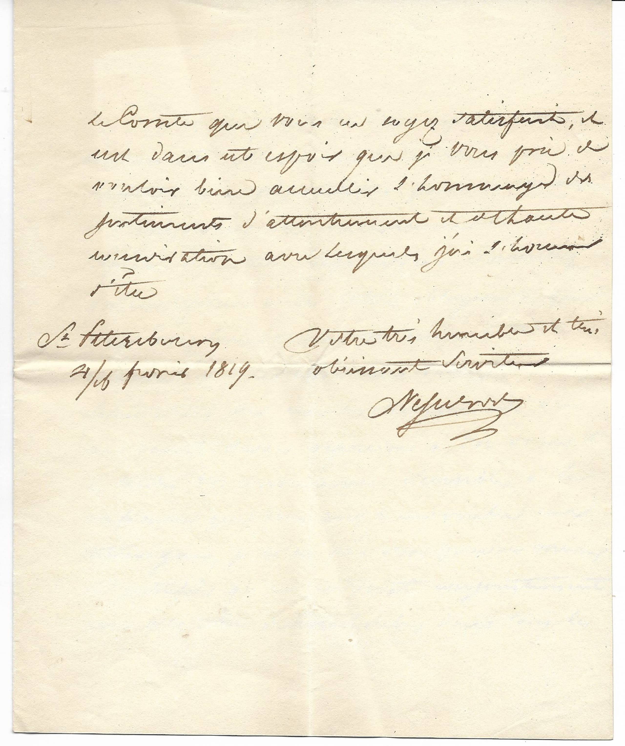 NESSELRODE KARL ROBERT COMTE VON (1780-1862) Autograph letter signed to a Count. St. Petersburg, 4/16 February 1819.