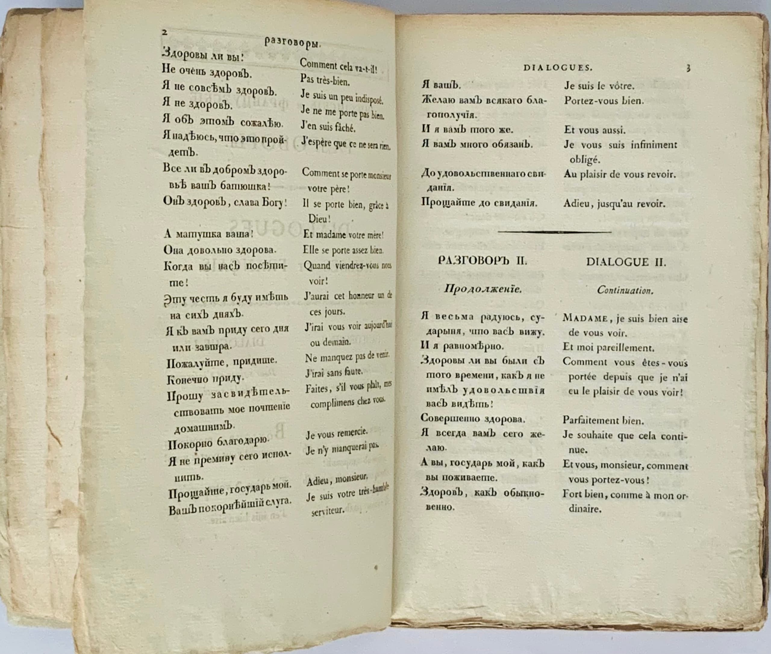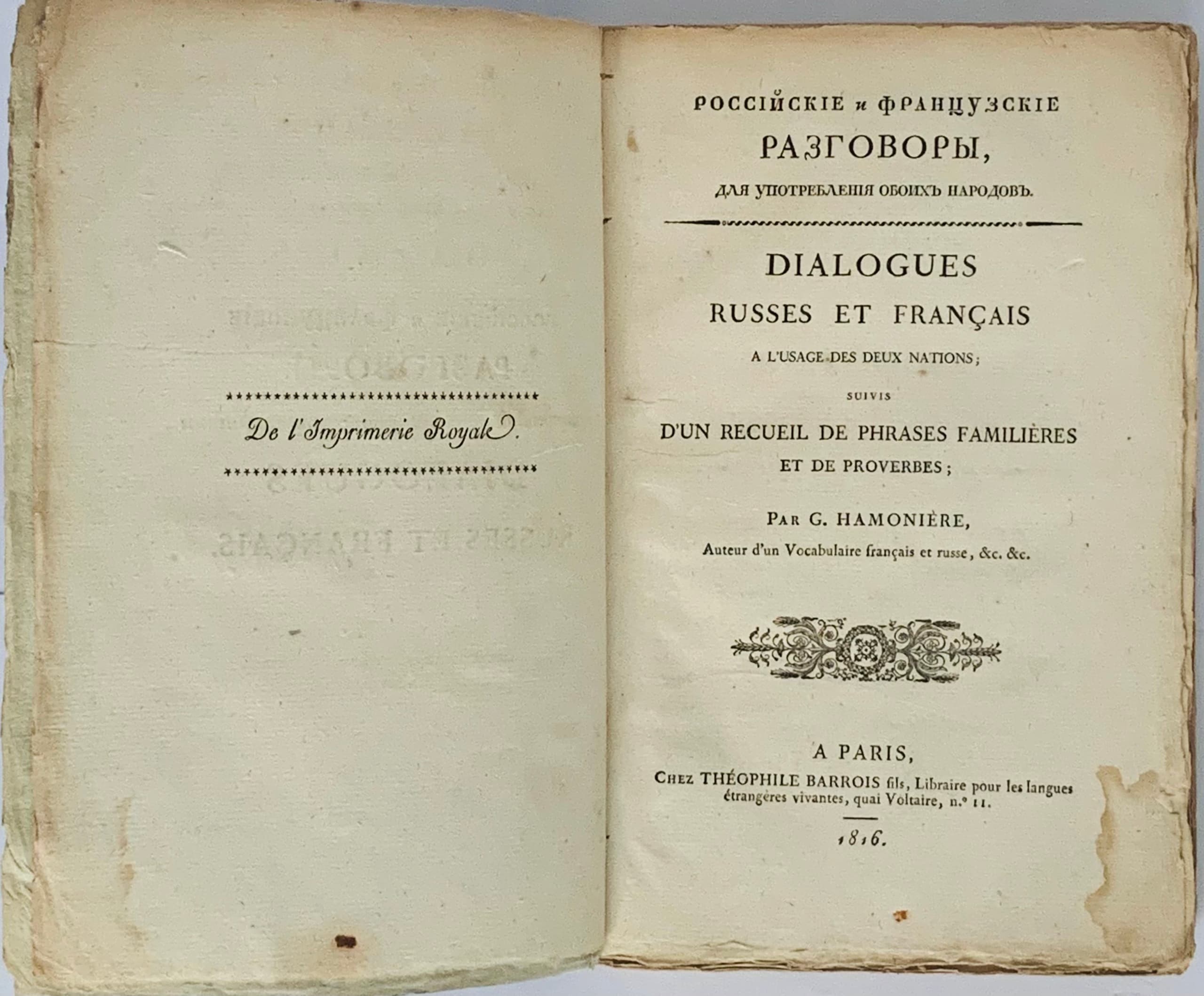 [Rossiyskie i frantsuzskie razgovory - Dialogues russes et français: dlya upotreblenia oboikh narodov] Paris, 1816.