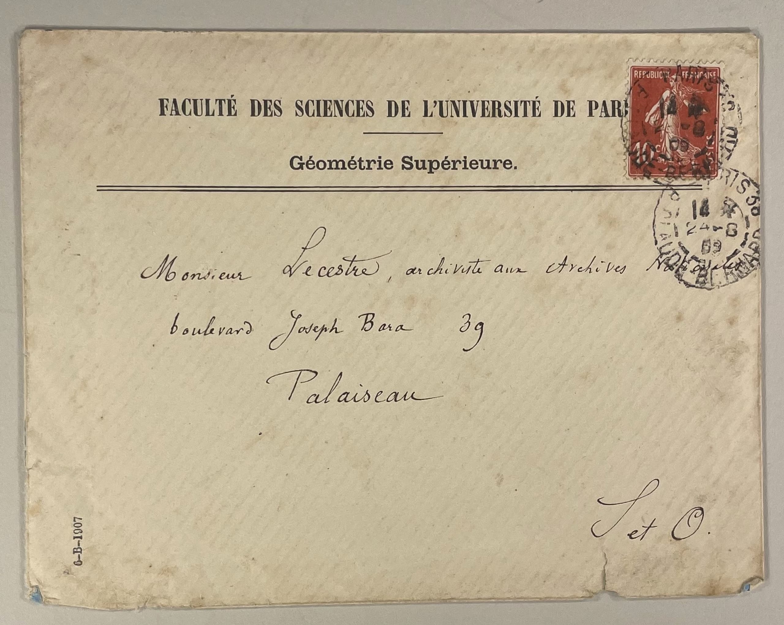 2 p. in-8, on paper headed ‘Université de Paris / Faculté des Sciences / Géométrie supérieure’