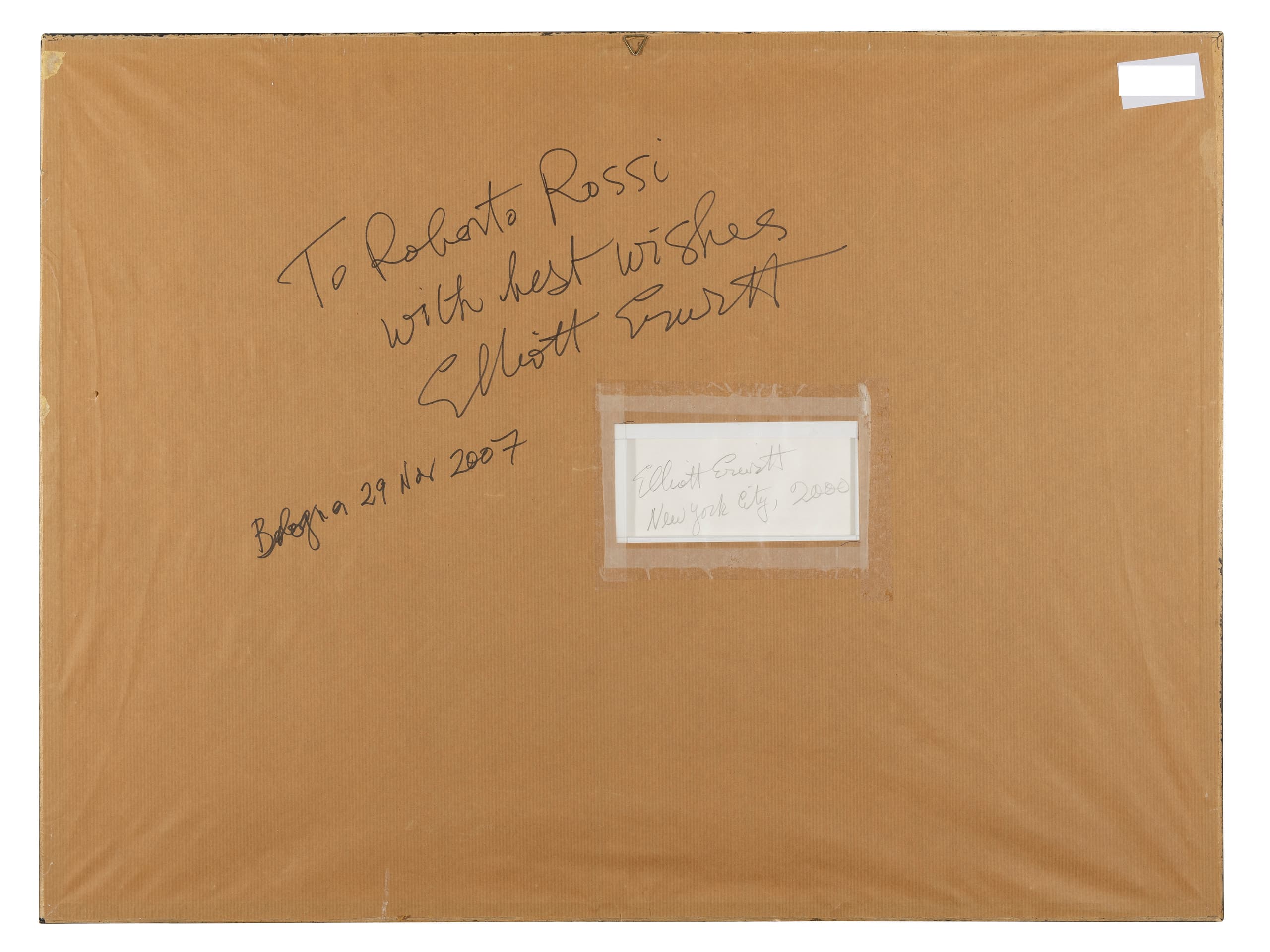 signed ‘Elliott Erwitt’ (lower right); signed, titled and dated in pencil ‘Eliott Erwitt/ New York City, 2000’, dedicated (on the reverse) gelatin silver print 37,1 x 55,9 cm (à vue)