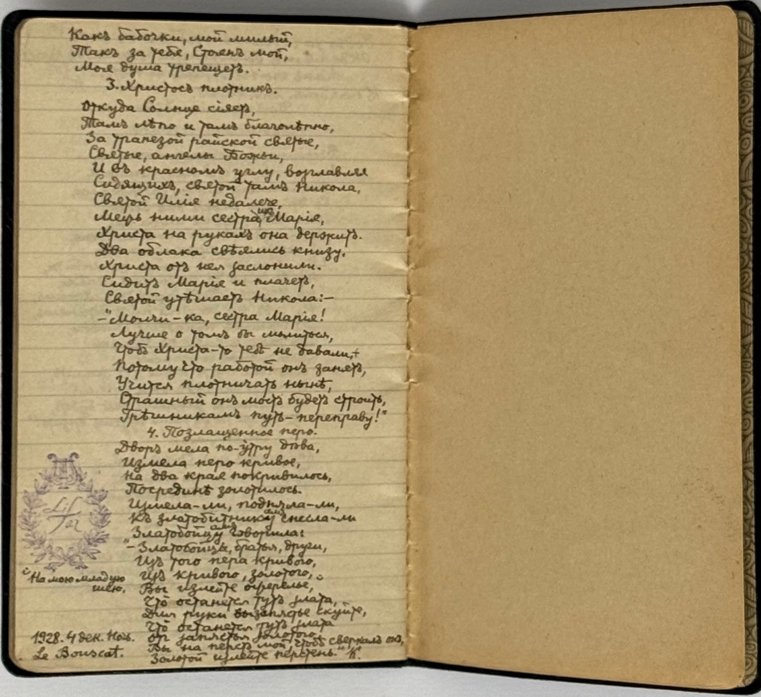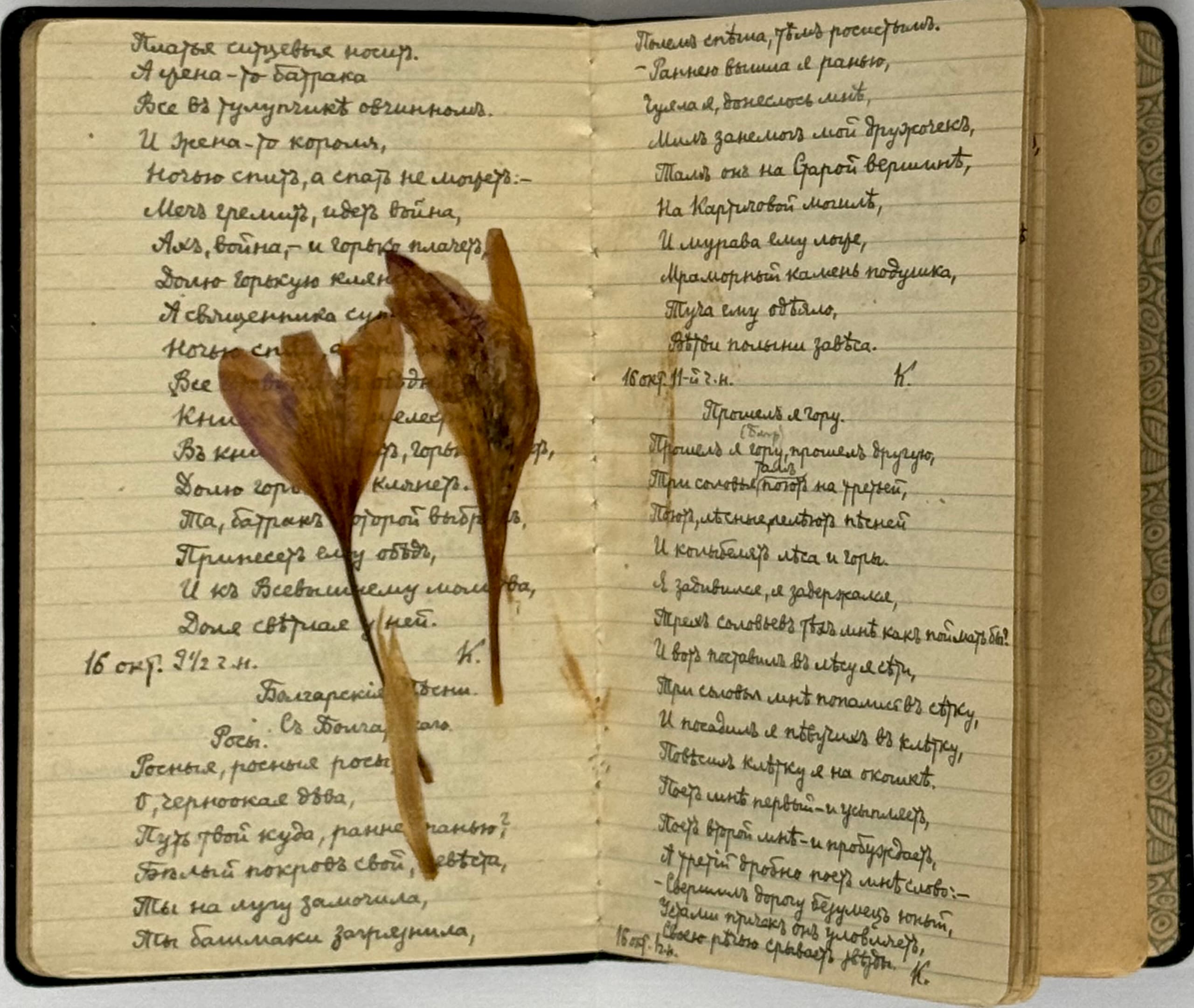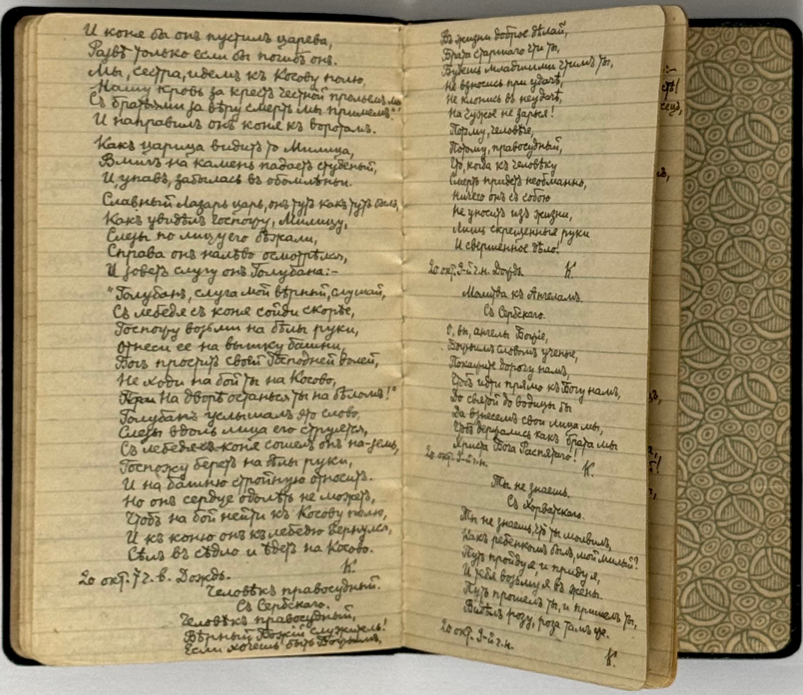 BALMONT KONSTANTIN (1867-1942), AUTOGRAPH A notebook with handwritten poems—translations from Polish, Lithuanian, Serbian, Croatian, and Bulgarian poetry. 1928.