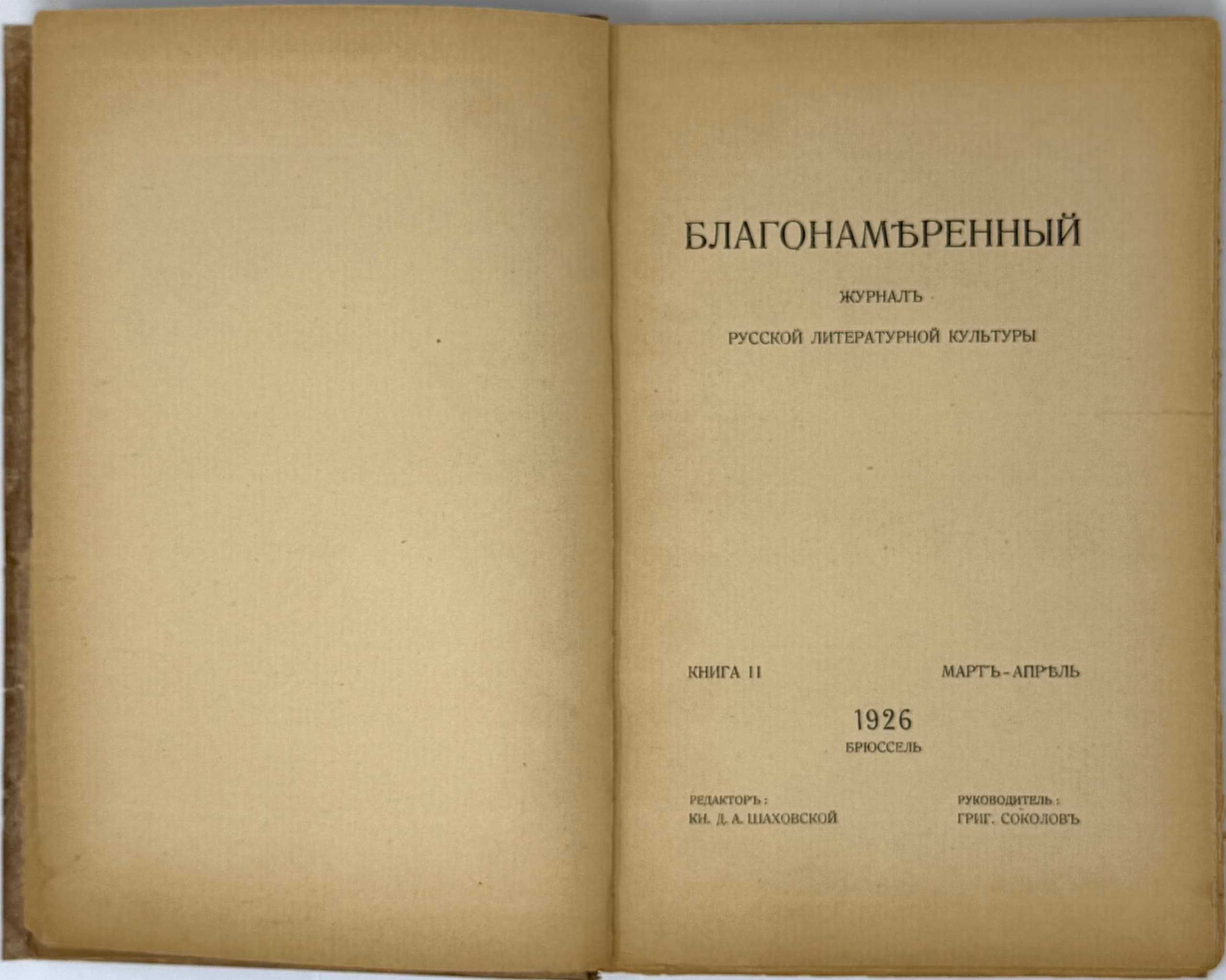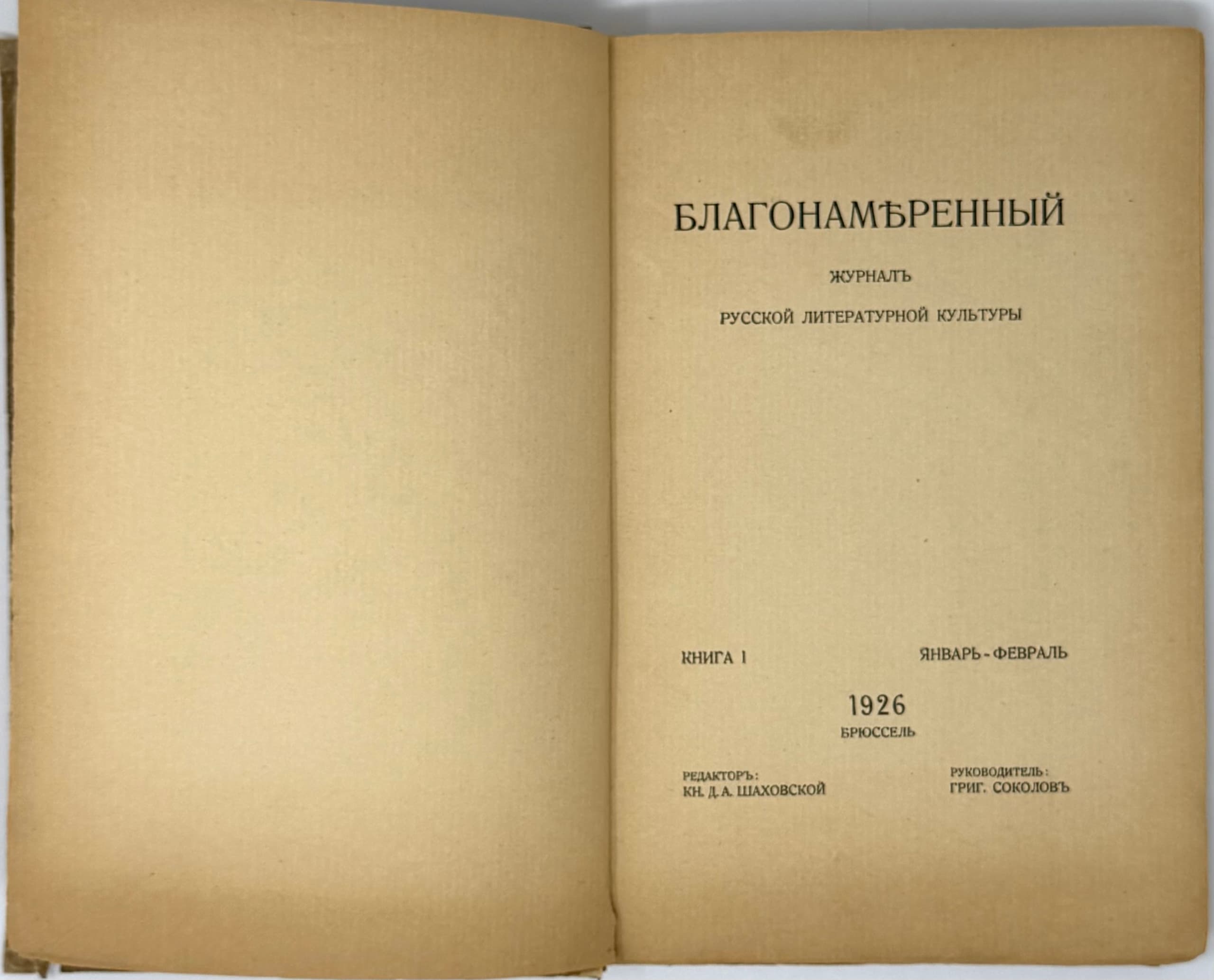 The magazine Blagonamenny was published in Brussels by Archbishop John (born Prince Dmitry Alekseevich Shakhovsky; 1902-1989). Only two issues were published. It featured poetry and prose by Georgy Ivanov, Georgy Adamovich, Irina Odoevtseva, Ivan Bunin, Sergei Efron, Alexander Remizov (“The Sorrows of the Mother of God”), and others.