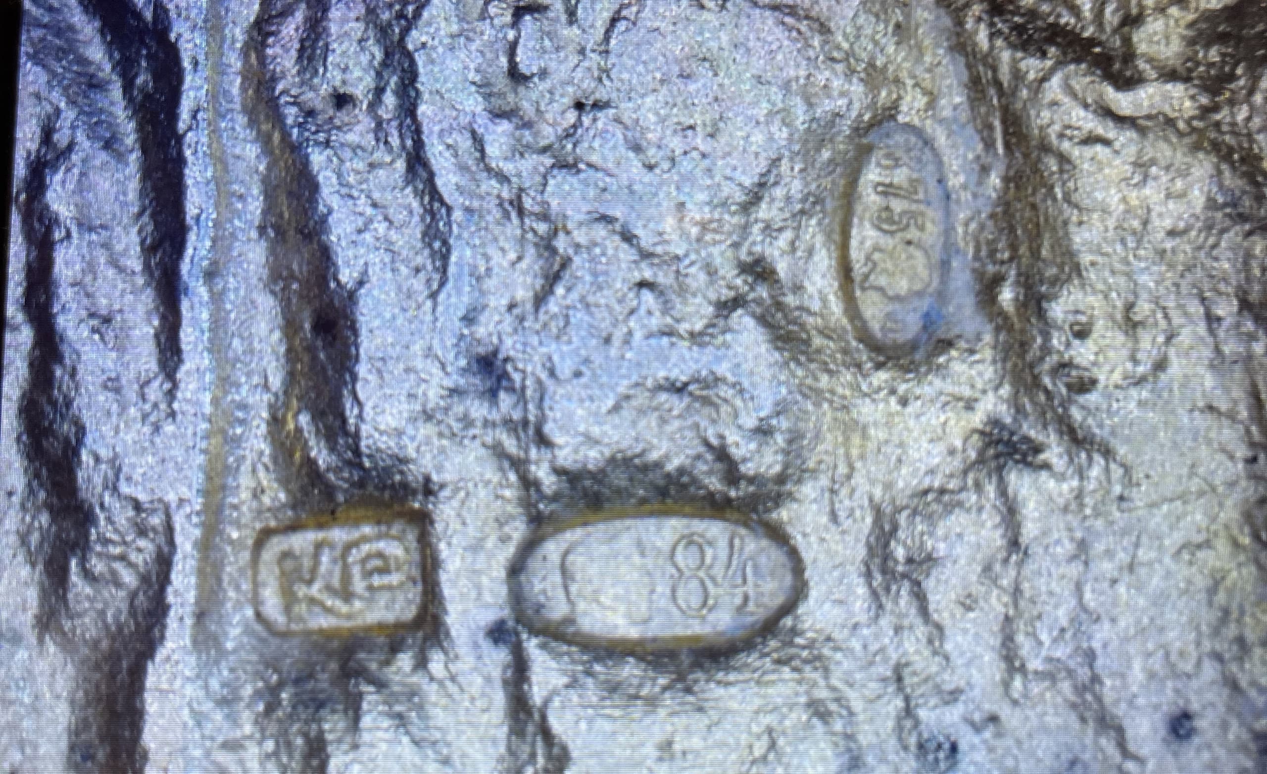 Hallmarks: ‘84’ silver standard and head facing right, maker’s mark ‘KR’, ‘875’ 8.8 x 11.7 cm gross weight: 256 gr.