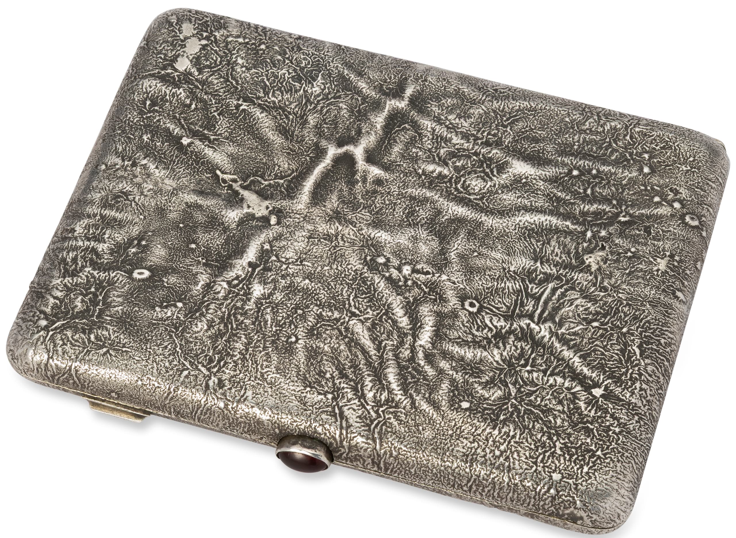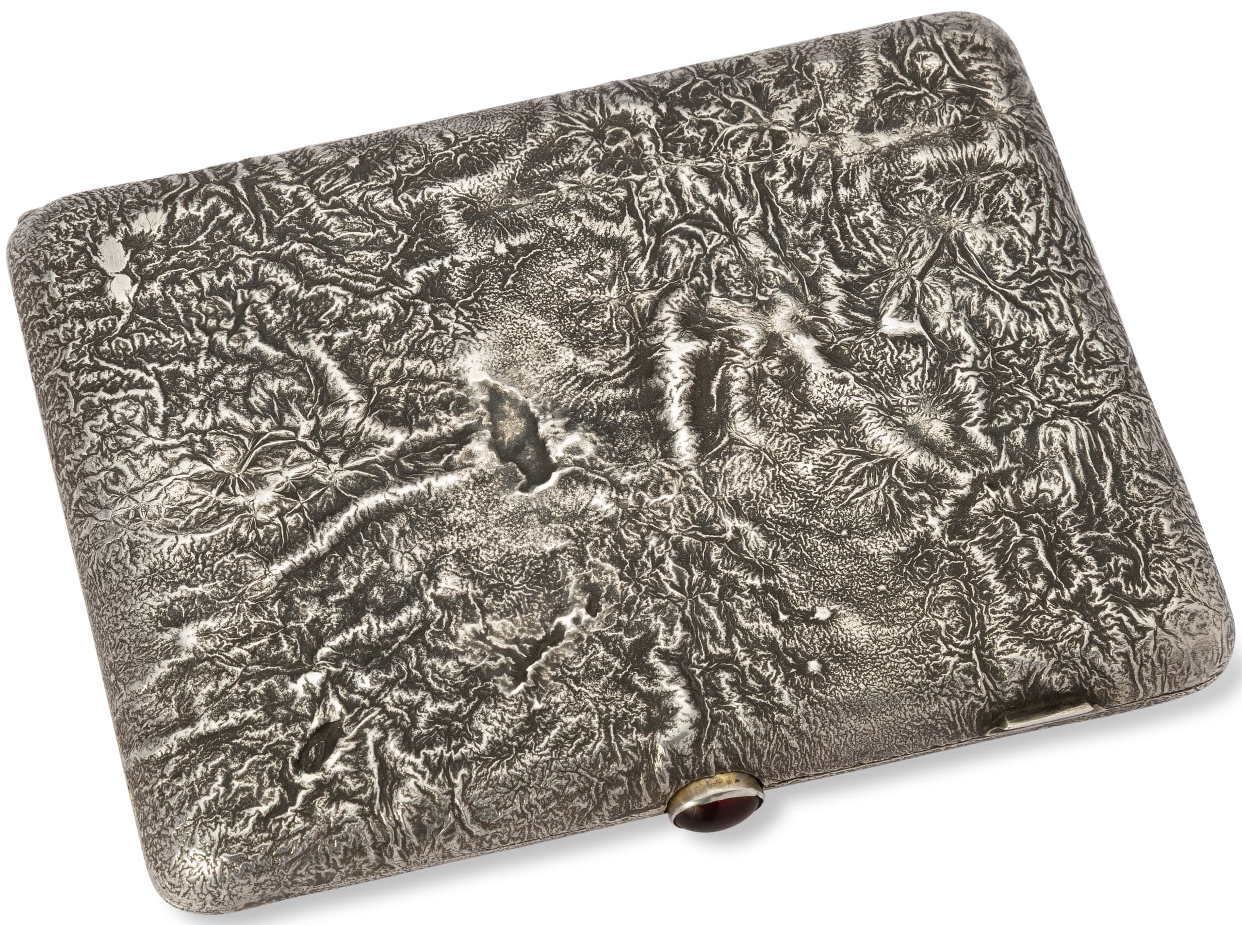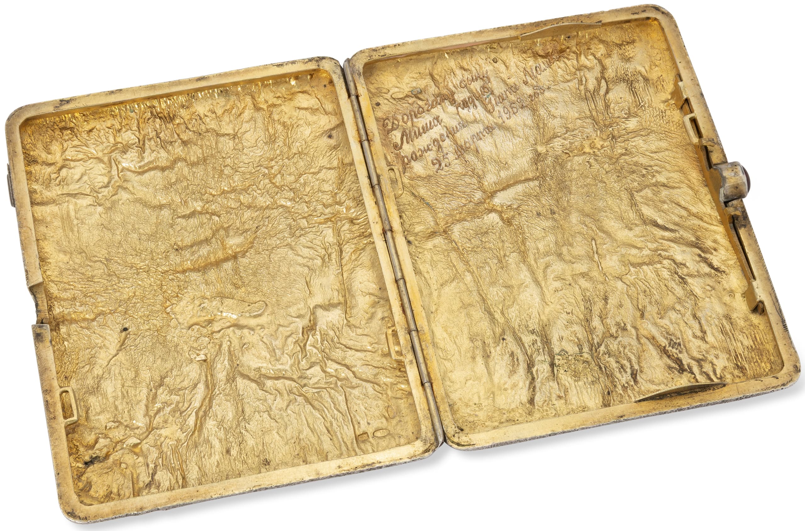RUSSIAN SILVER-GILT SAMORODOK CIGARETTE CASE WITH A RED CABOCHON St Petersburg, 1908-1917