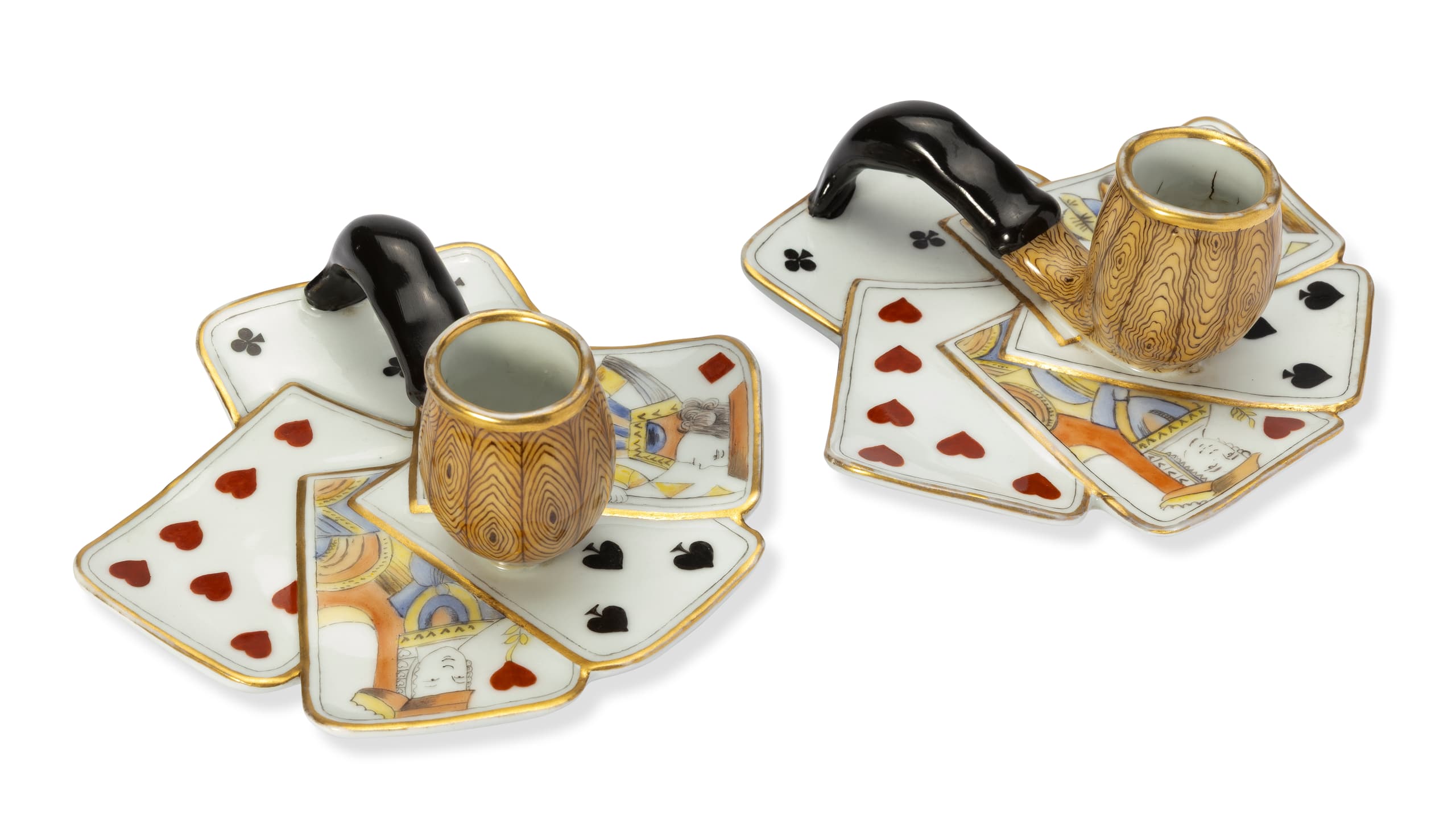 KORNILOV PAIR OF PORCELAIN PIPES ON A DECK OF CARDS Porcelain Factory Kornilov Brothers, Saint Petersburg, 1861-1917