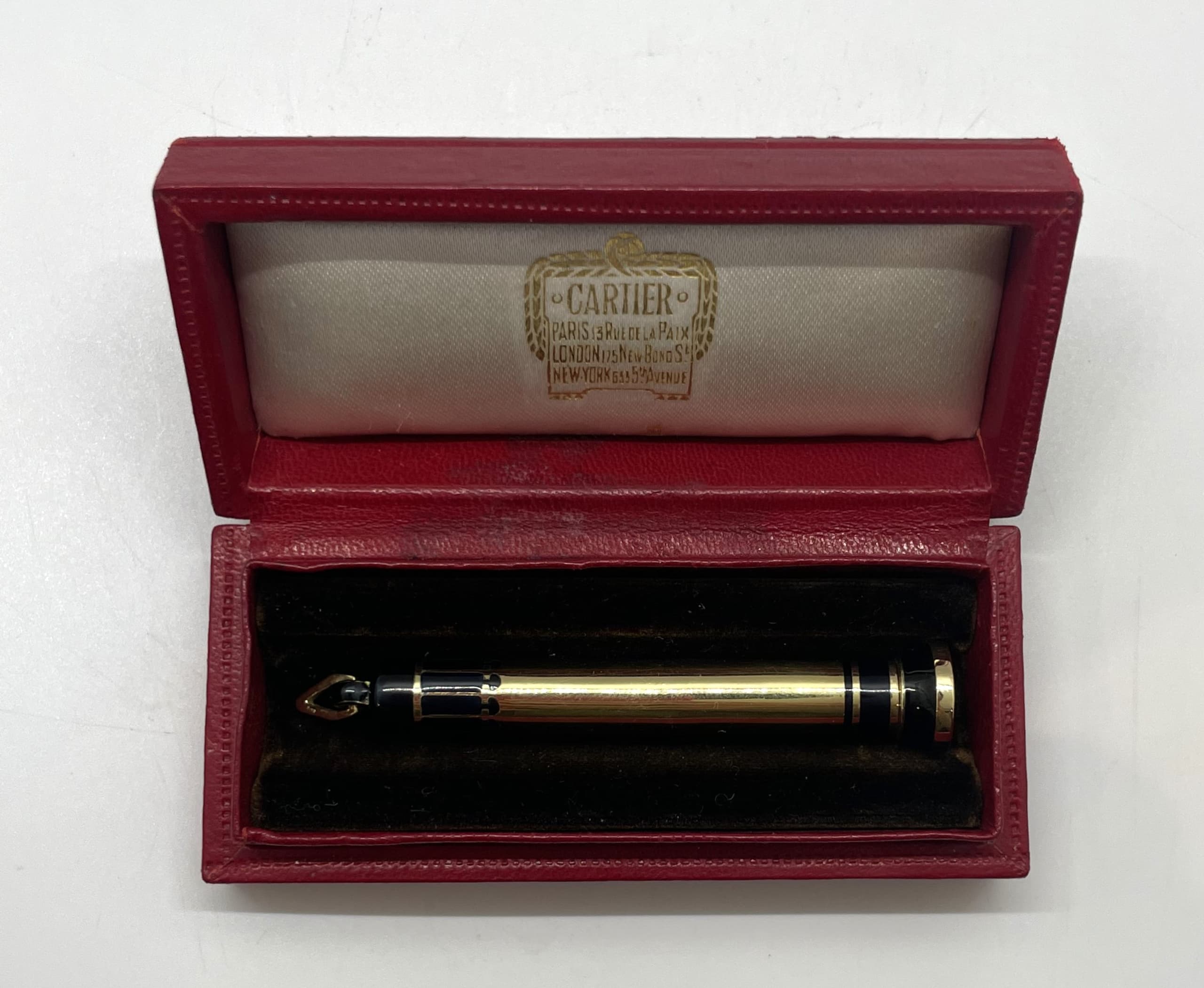 CARTIER PARIS ART DECO GOLD, ENAMEL TELESCOPIC PENCIL/SEAL, CIRCA 1929-30