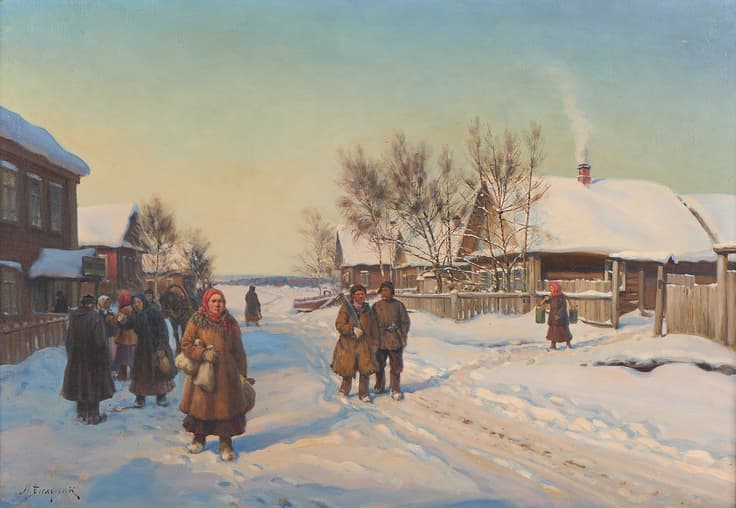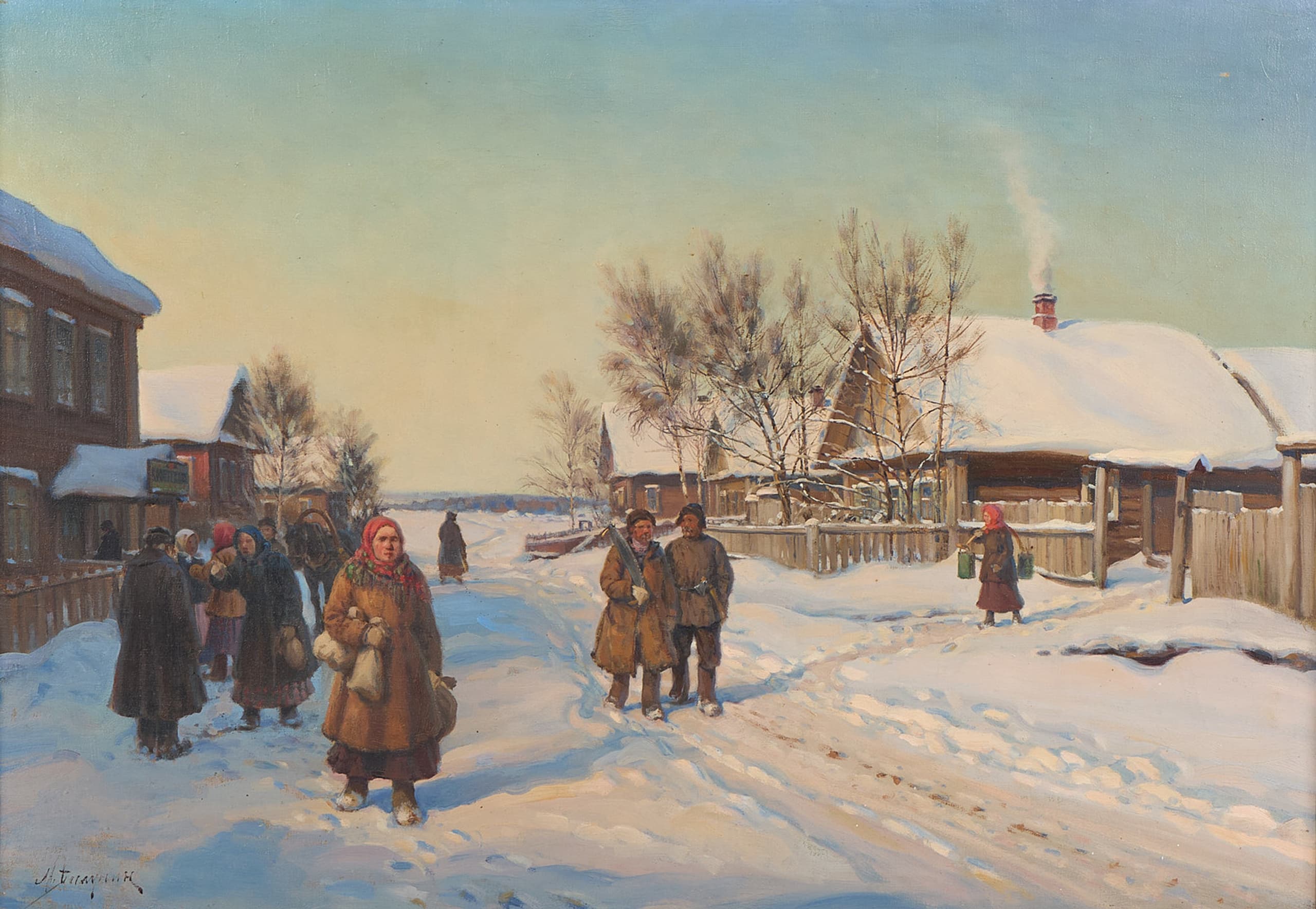 MIKHAIL BALUNIN (1875-1939) Winter village errands