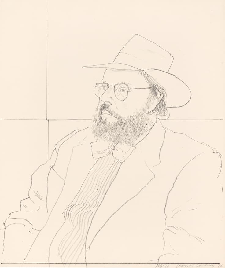 In 1976, David Hockney created his remarkable Friends series, capturing the essence and personality of his sitters with characteristic clarity and warmth. Executed at Gemini G.E.L. in Los Angeles, the portraits were drawn from life as Hockney’s friends posed before him, often within carefully constructed, domestic-like settings. Offering a deeply autobiographical glimpse into the artist’s Los Angeles circle of the 1970s, the series includes depictions of Henry Geldzahler , Mo McDermott, Brooke Hopper, Billy Wilder.
