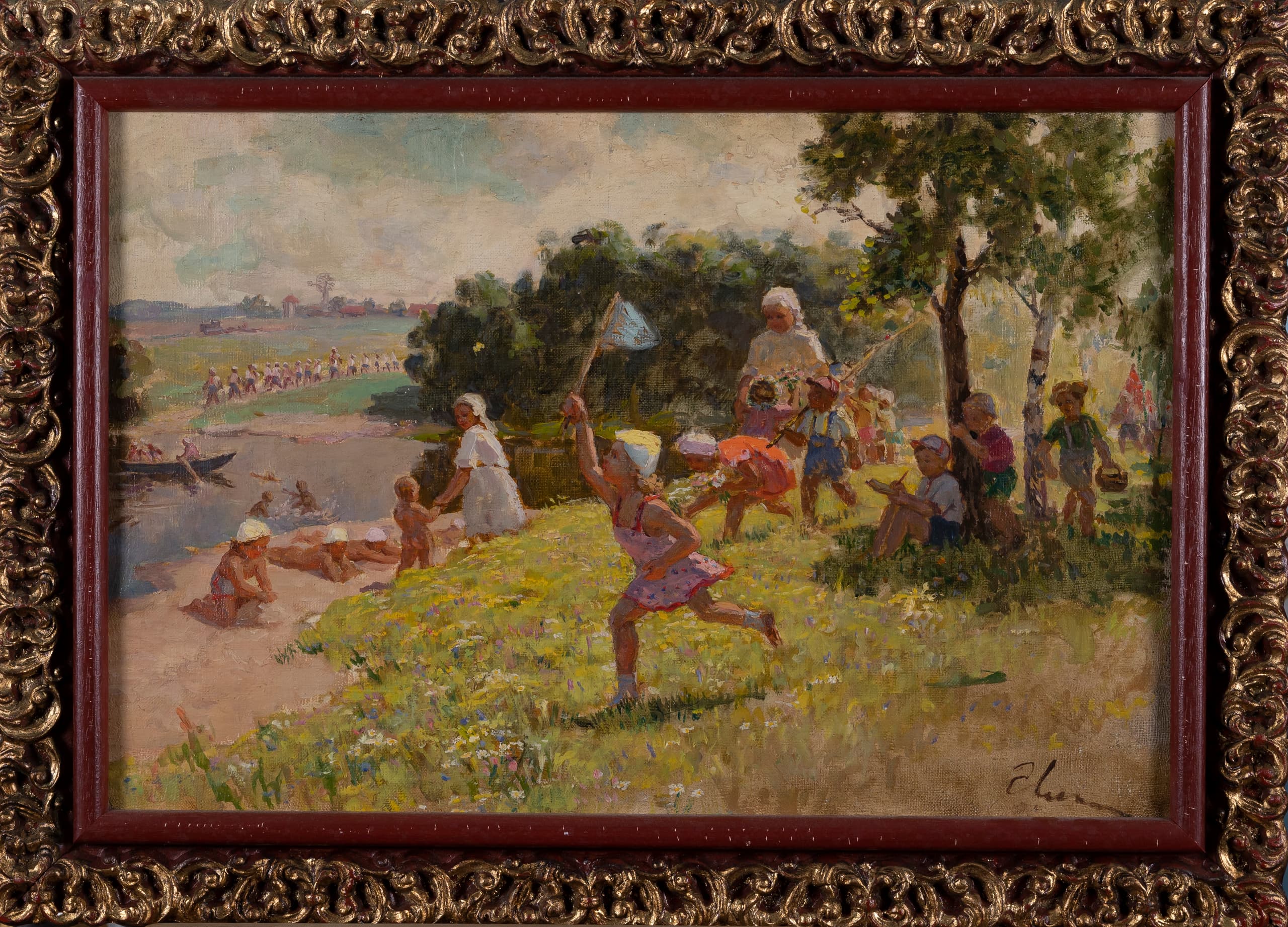 illegibly signed (lower right); titled and dated in Cyrillic (on the reverse)
