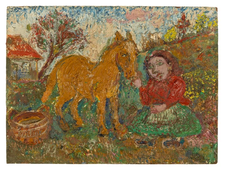 signed and dated ‘Burliuk 57’ (lower left) oil on board 22.3 x 29.5 cm