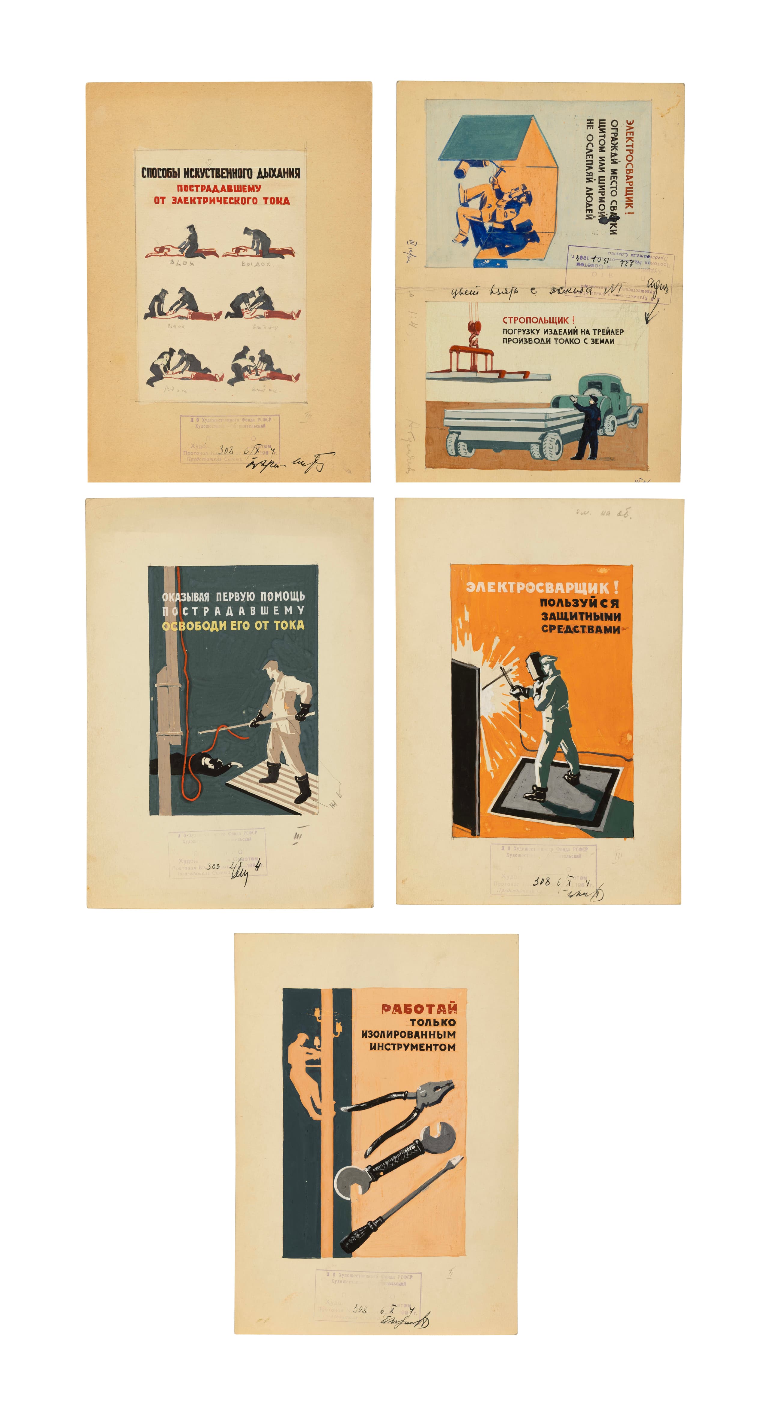 SET OF SEVEN SKETCHES FOR THE SOVIET POSTERS