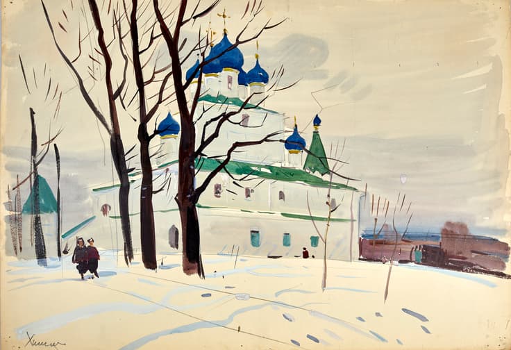 signed in Cyrillic ‘Khimich’ (lower left) watercolour and pencil paper 30 x 42 cm