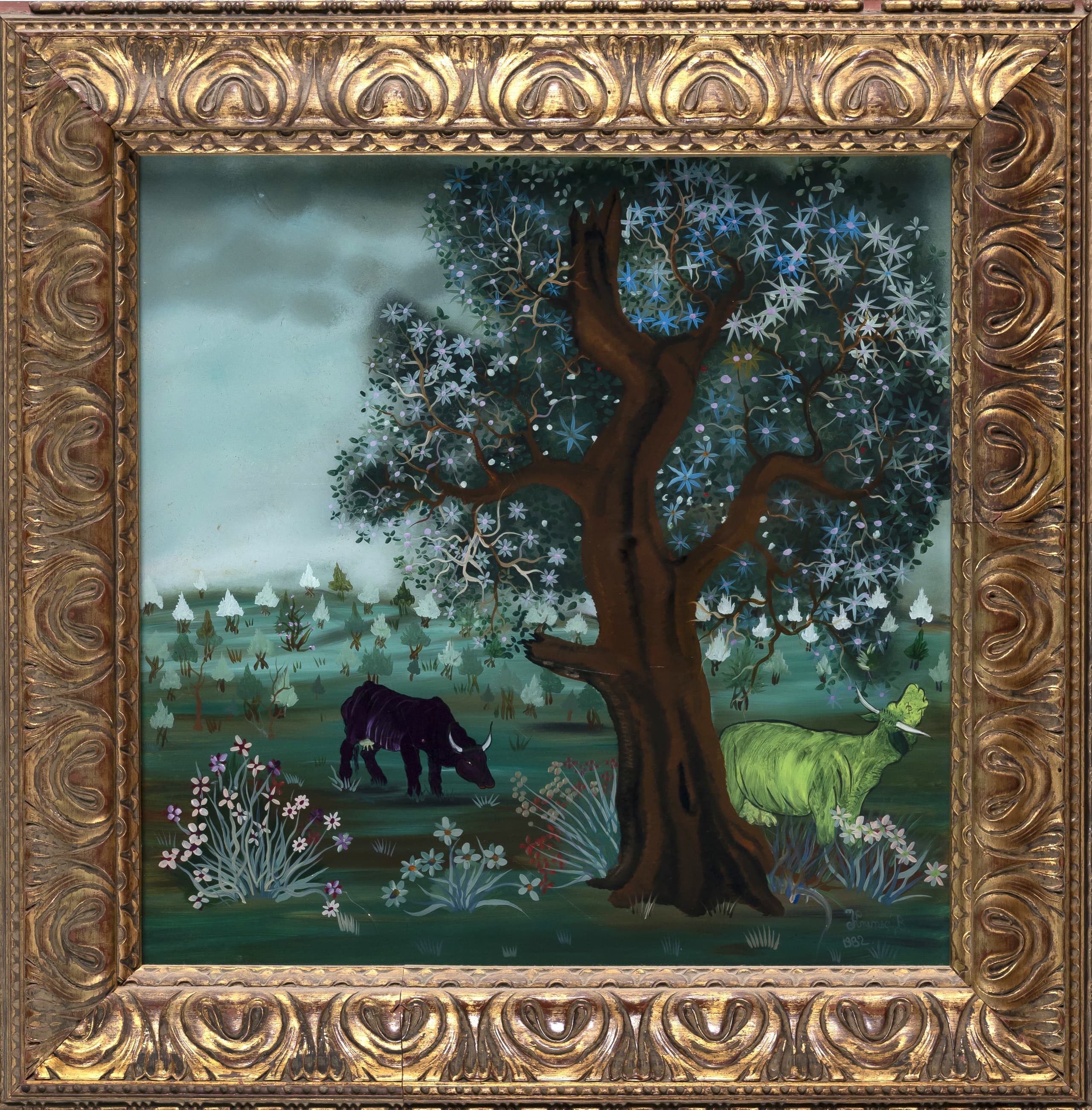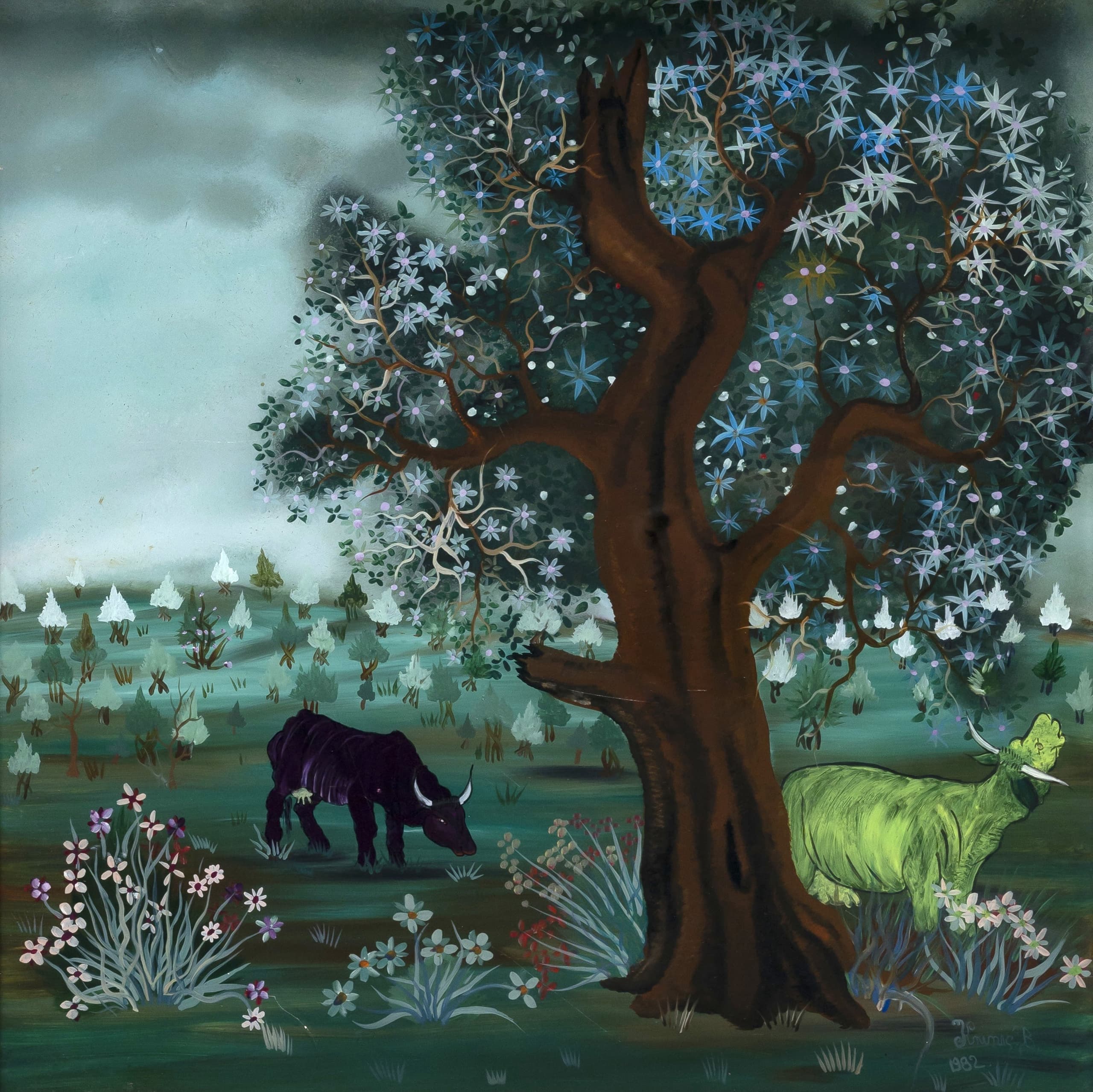 signed and dated ‘Krunic B./ 1982’ (lower right); dated and located ‘Monte-Carlo’/1982’, stamp ‘BORIVOJ KRUNIC Peinture naïve’, stamp ‘Monte-Carlo Academie Boris Borivoj Krunic’ (on the reverse)