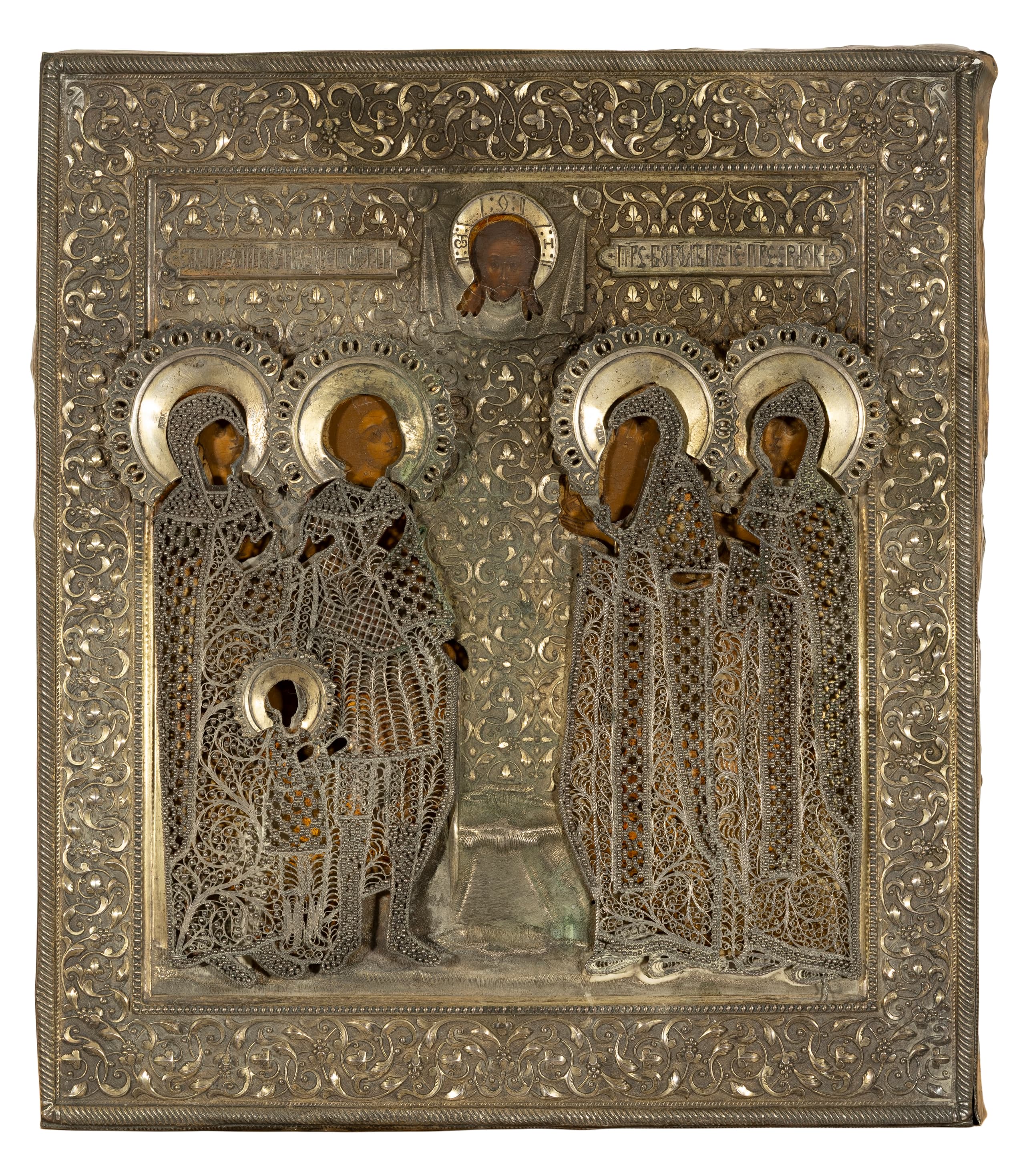 Oklad: silver, embossed, engraving, filigree, gilding