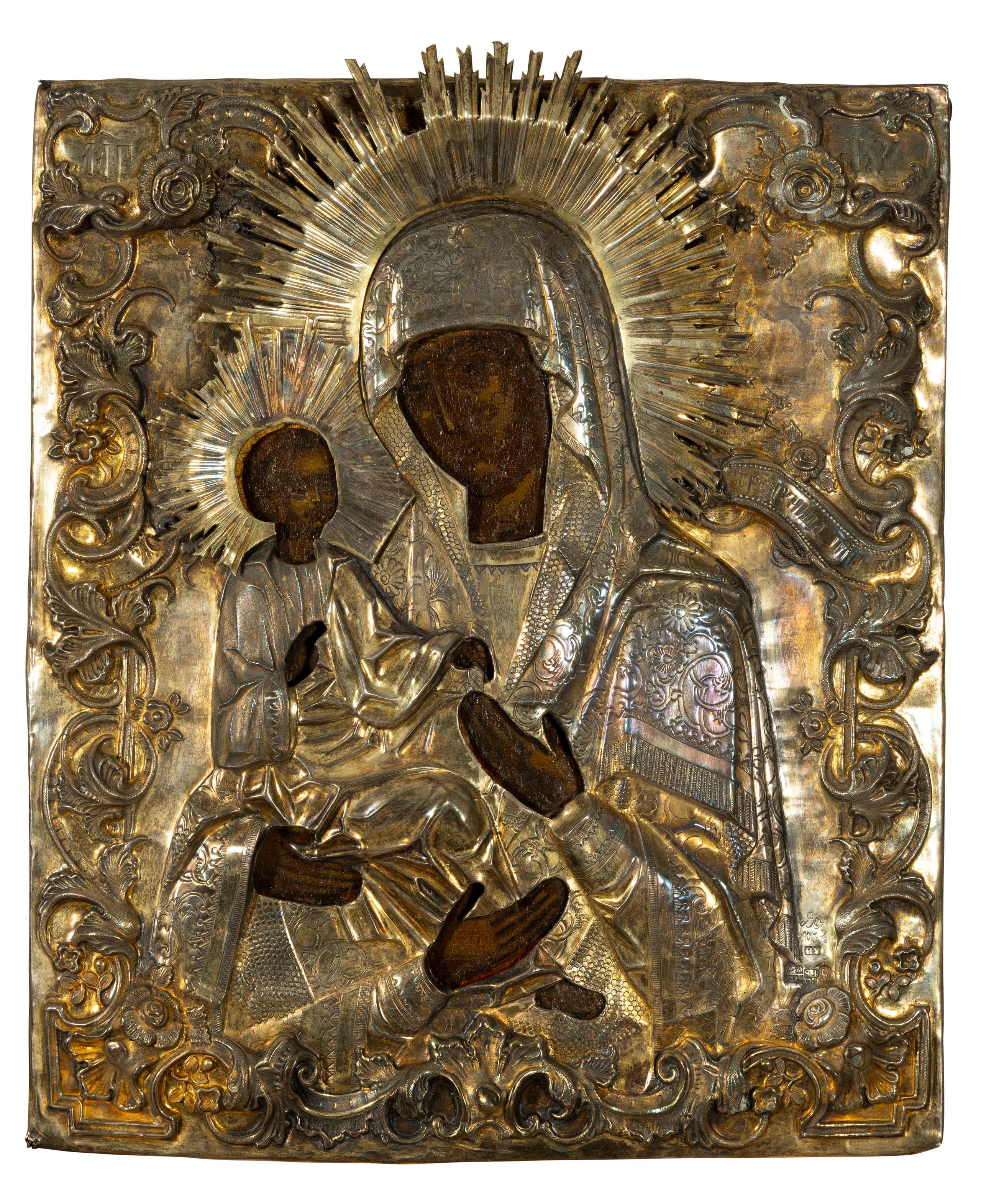 ICON ‘THE MOTHER OF GOD WITH THREE HANDS’ IN SILVER-GILT OKLAD Volga region, mid-19th century