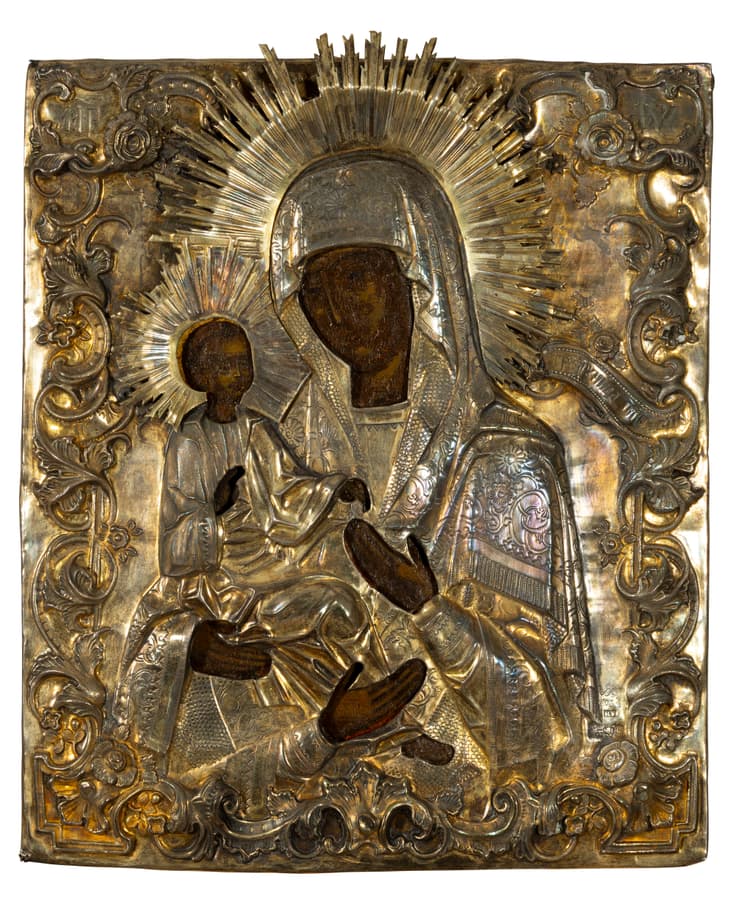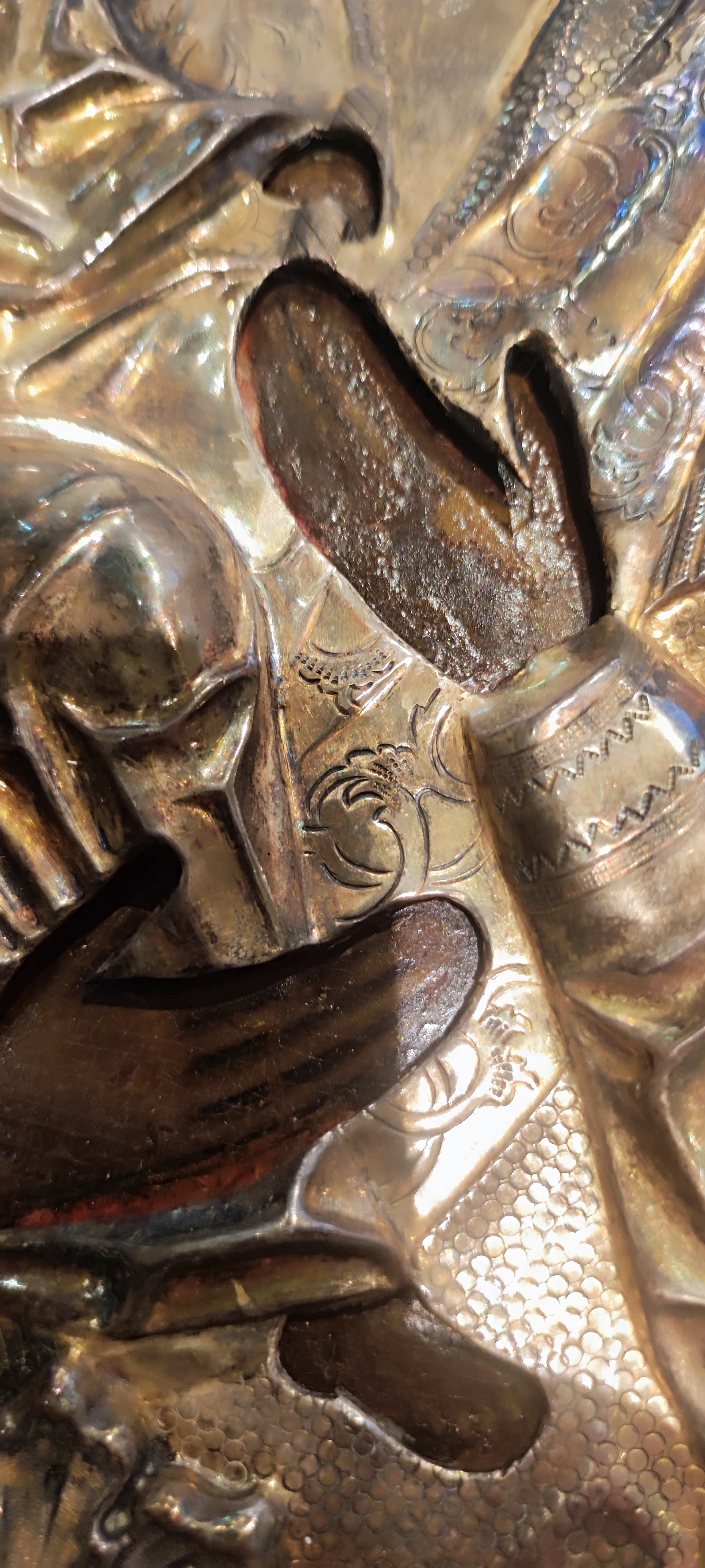 ‘The Mother of God with Three Hands’ (‘Troeruchnitsa’) is a miraculous image before which Saint John Damascene was healed of his severed hand. As a sign of gratitude for his healing, John Damascene affixed a silver hand to the icon, hence the name given to the icon. The oklad is impressive for its voluminous and refined decoration. The icon is of significant interest to collectors.