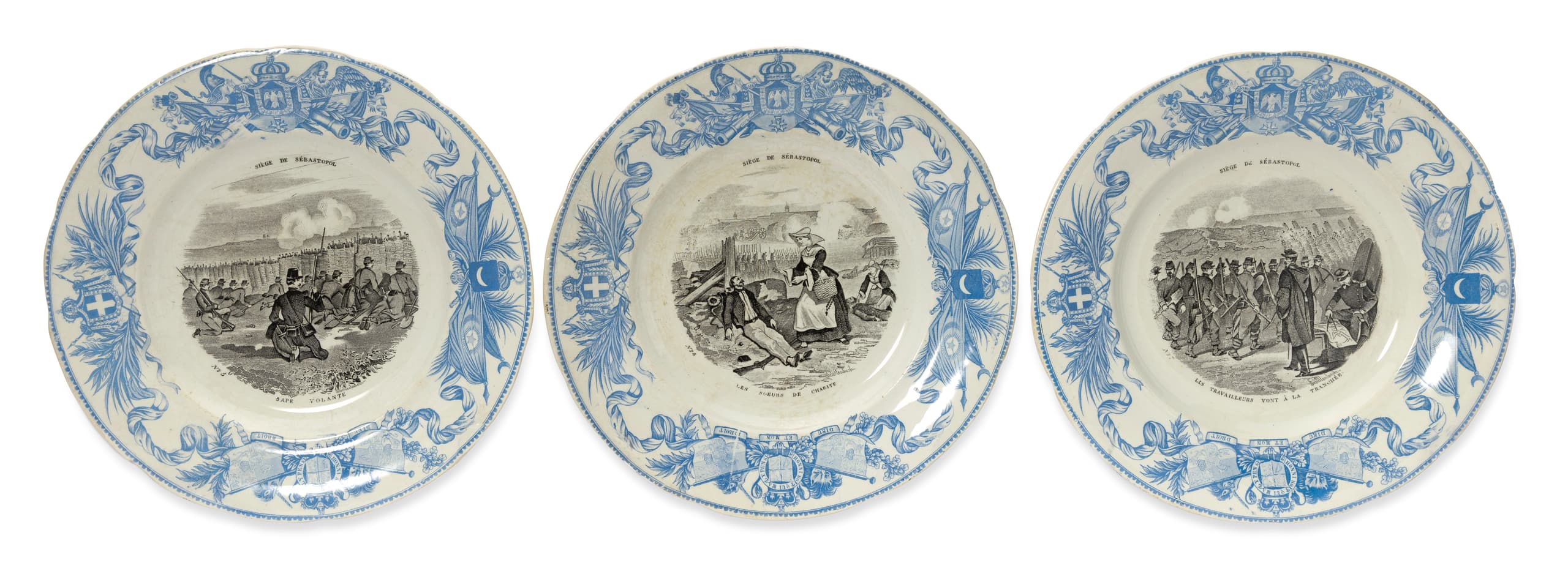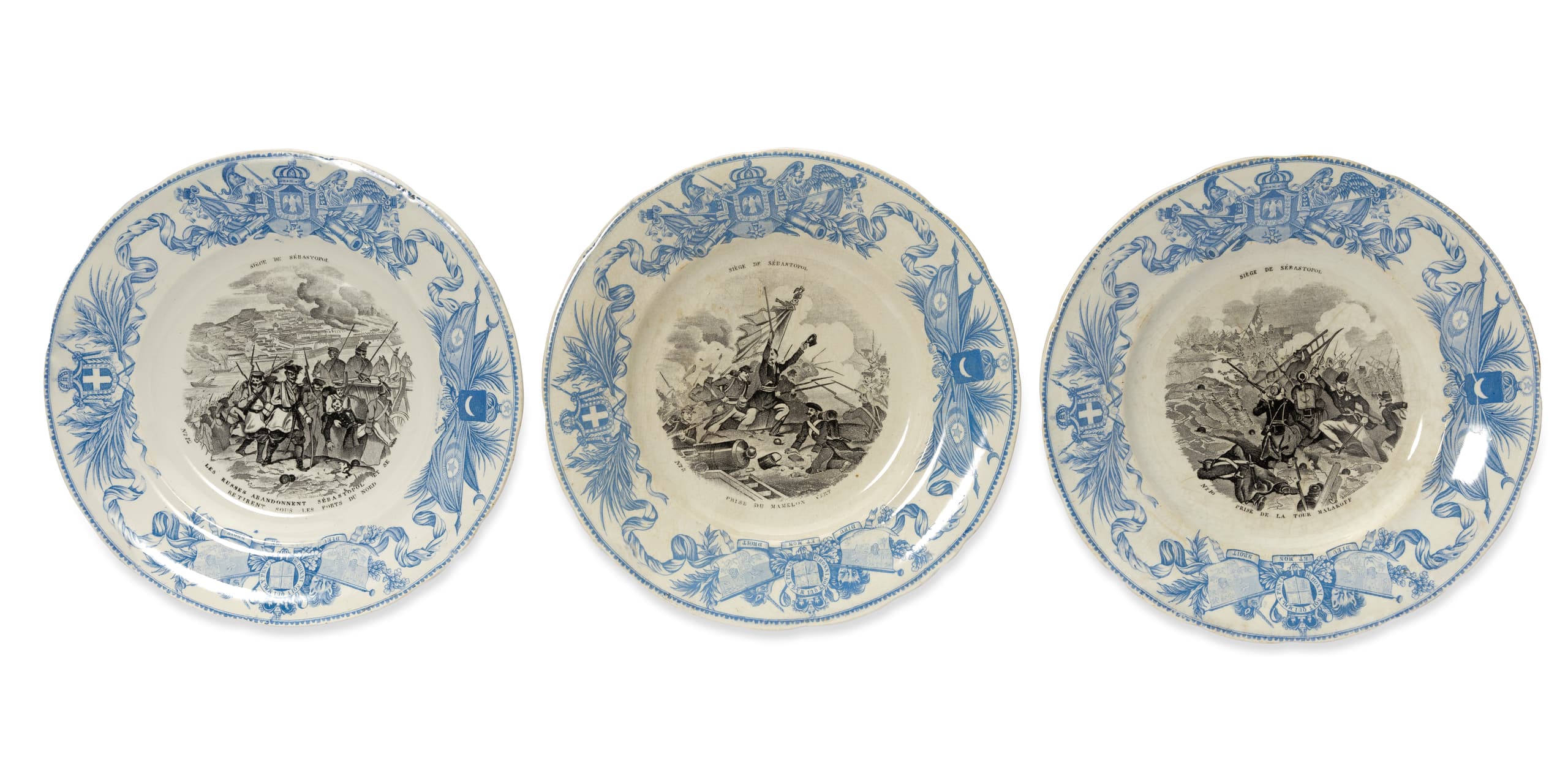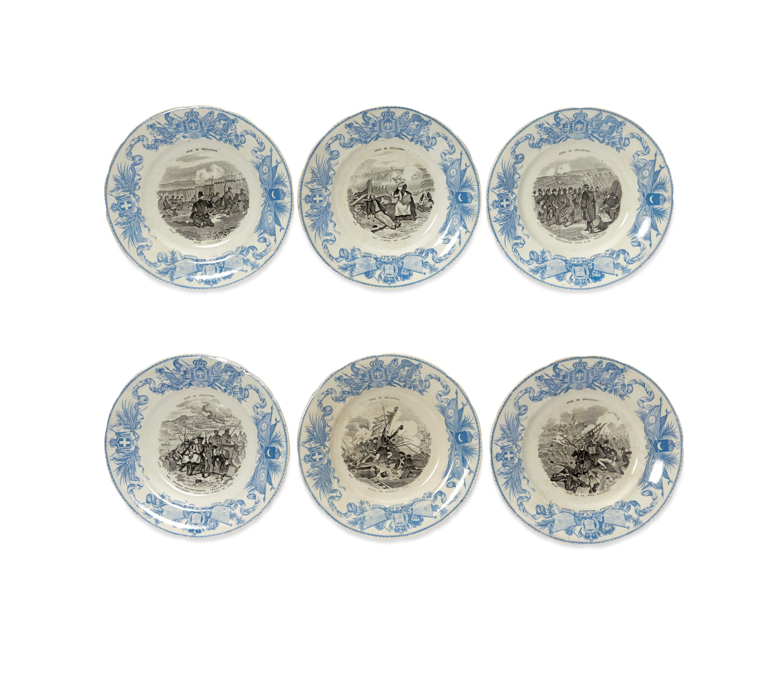 [CRIMEAN WAR] A SET OF SIX PLATES FROM THE SERIES ‘THE SIEGE OF SEVASTOPOL’ Creil-Montereau Faience Manufactory, France, second half of the 1850s