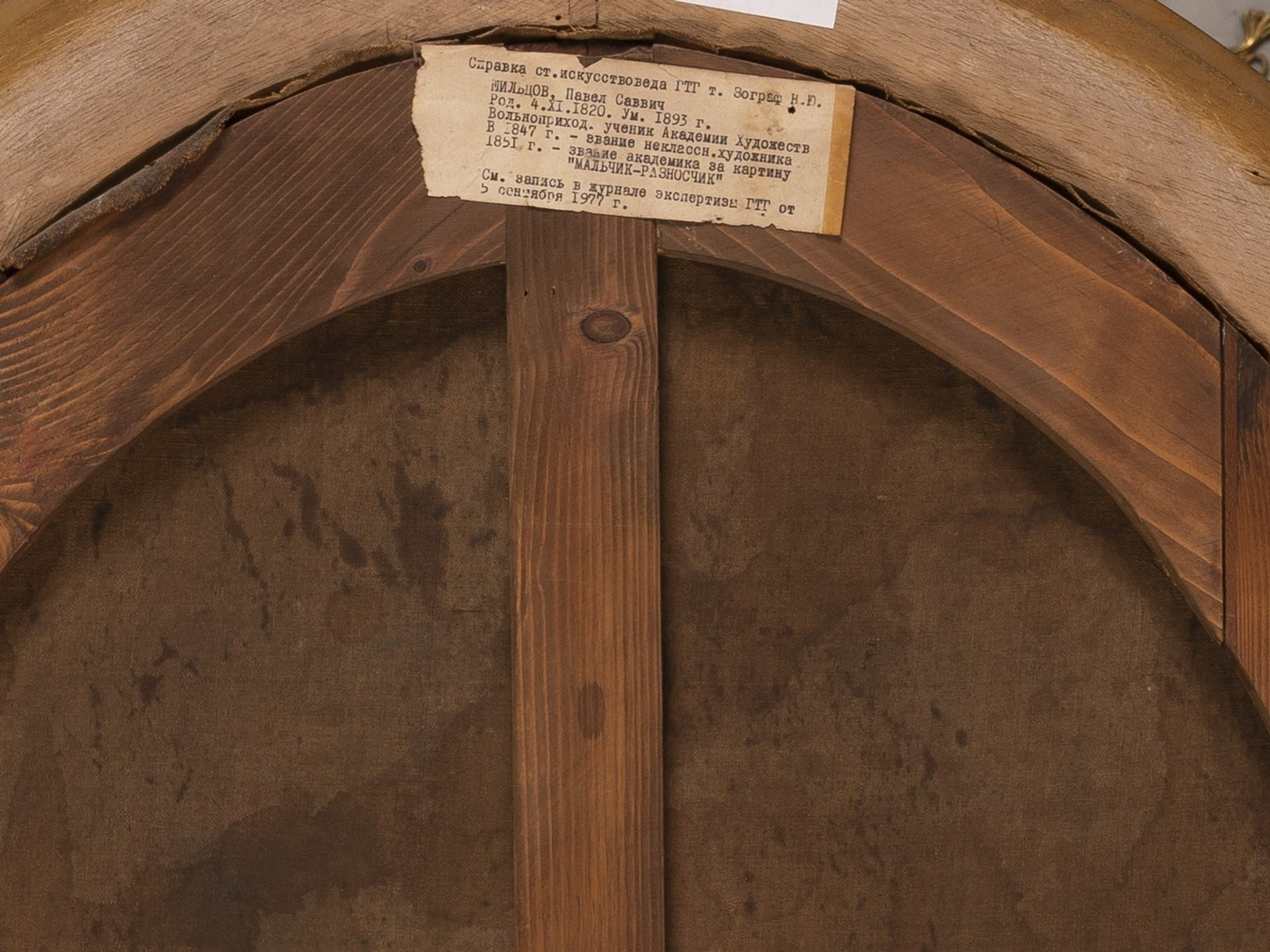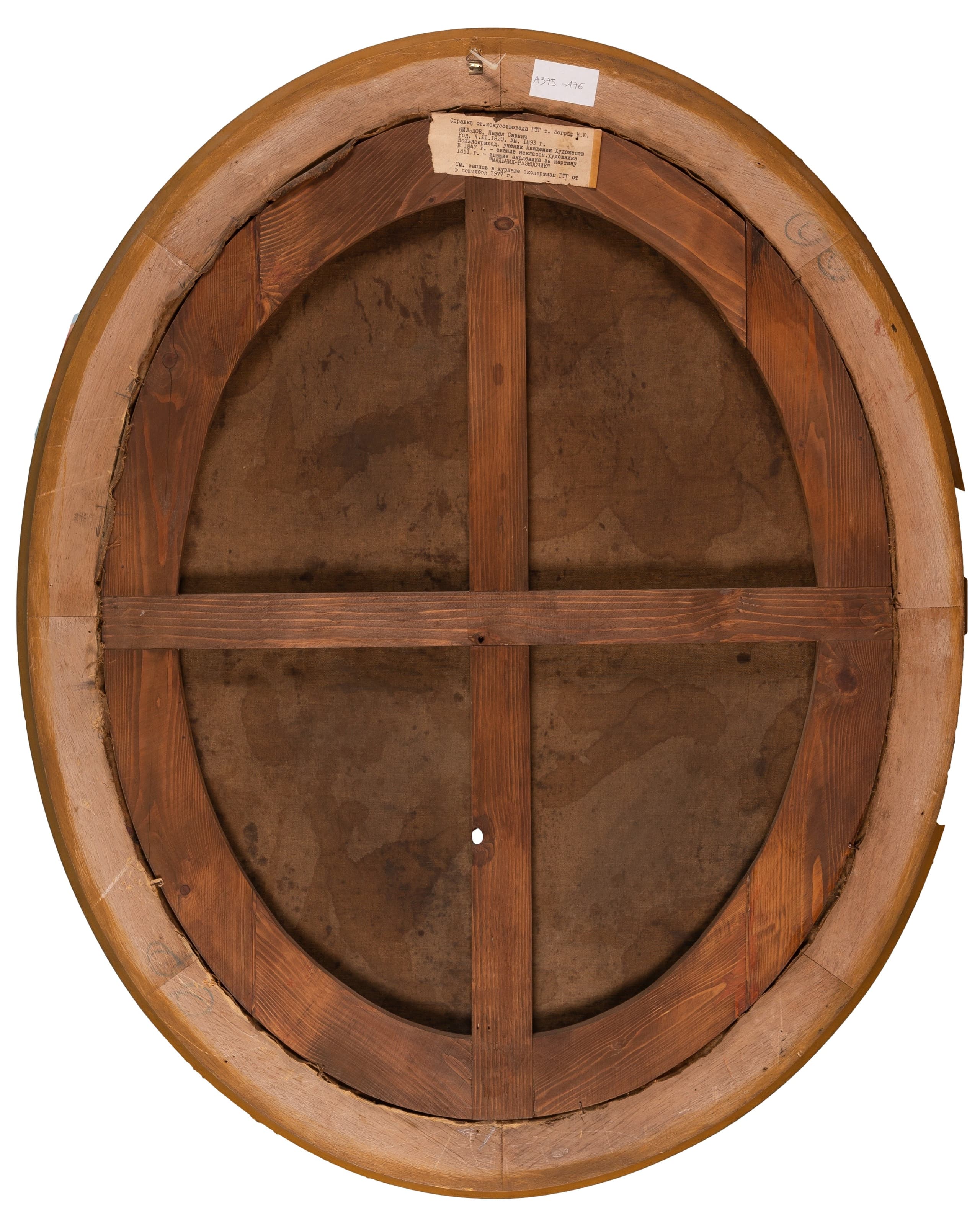 old label mentioning the expertise of N. Yu. Zograf from The State Tretyakov Gallery, 1977 (on the reverse oil on canvas oval, H. 69 cm painted circa 1862 81.5 x 63 cm