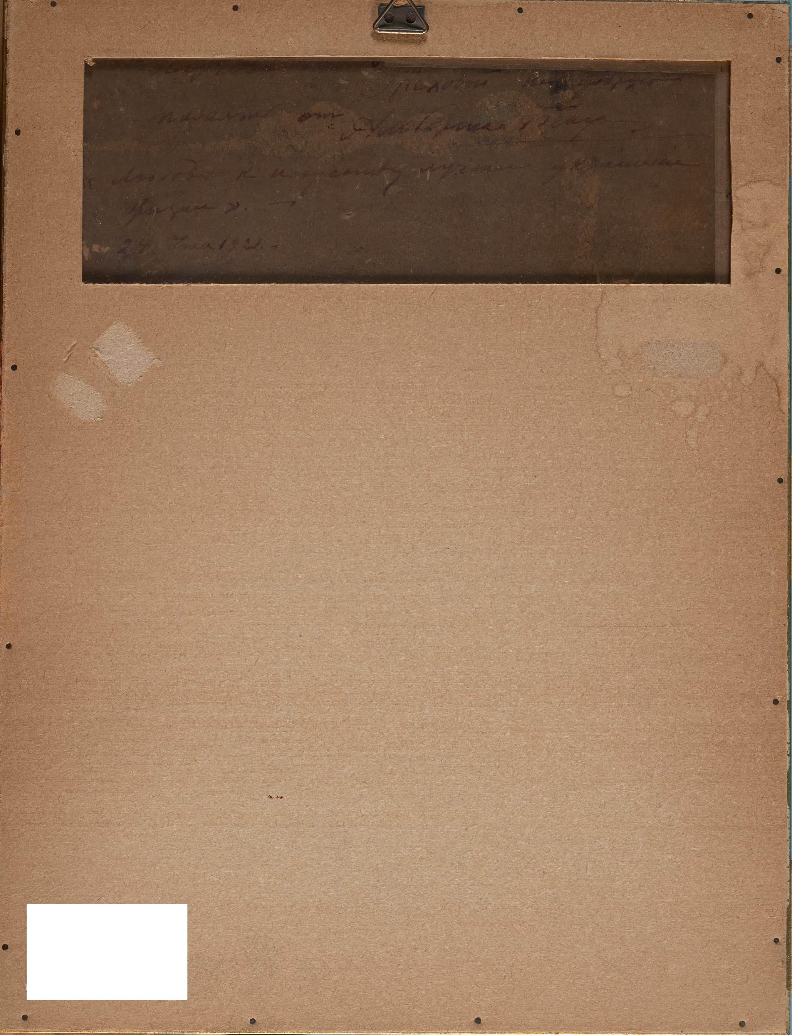handwritten inscription in Cyrillic ‘…. Na pamiat ot Alberta Benua…. lubov k iskusstvu luchshee ukrashenie…. 24 maya 1921 [In memory from Albert Benoit... the love of art is the most beautiful adornment... 24 May 1921]’ (on the reverse) watercolour on paper executed in 1921 31.5 x 24 cm (à vue)