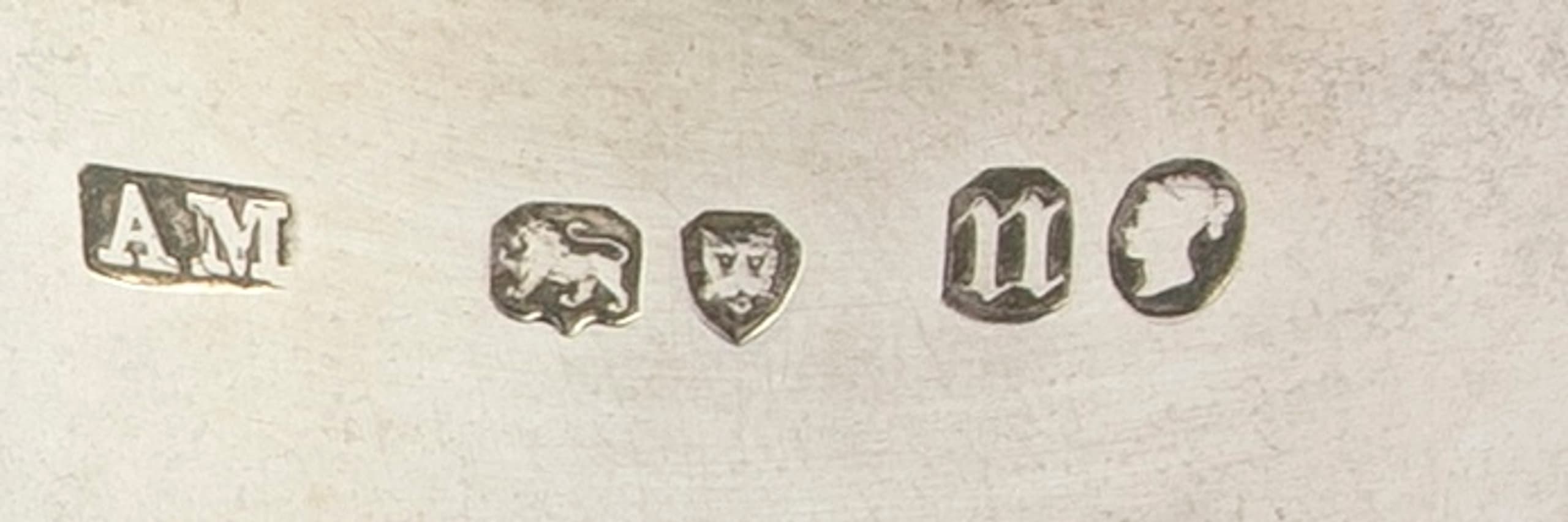 Hallmarks: master’s mark ‘AM’ (probably for Alexander Macrae, London, circa 1856 - circa 1870), London Assay Office mark ‘Leopard head’, assay’s mark ‘Lion passant’, letter ‘n’ probably for 1868 (?)