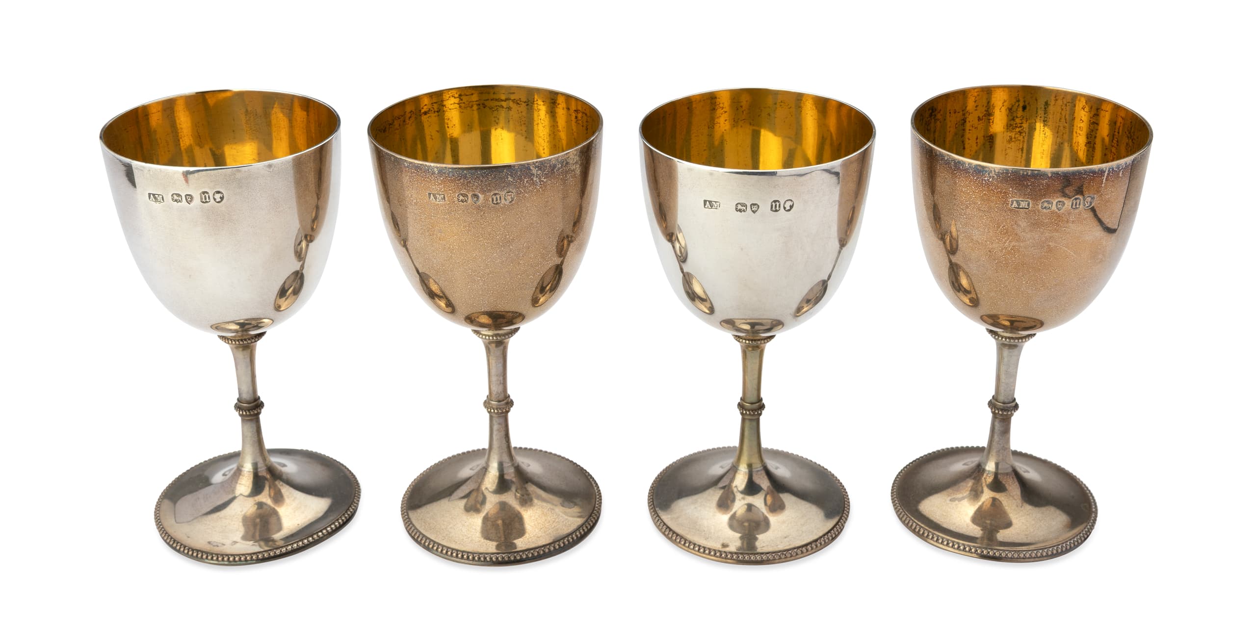 SET OF FOUR ENGLISH SILVER WINE GLASSES Mark of Alexander Macrae, London, circa 1868