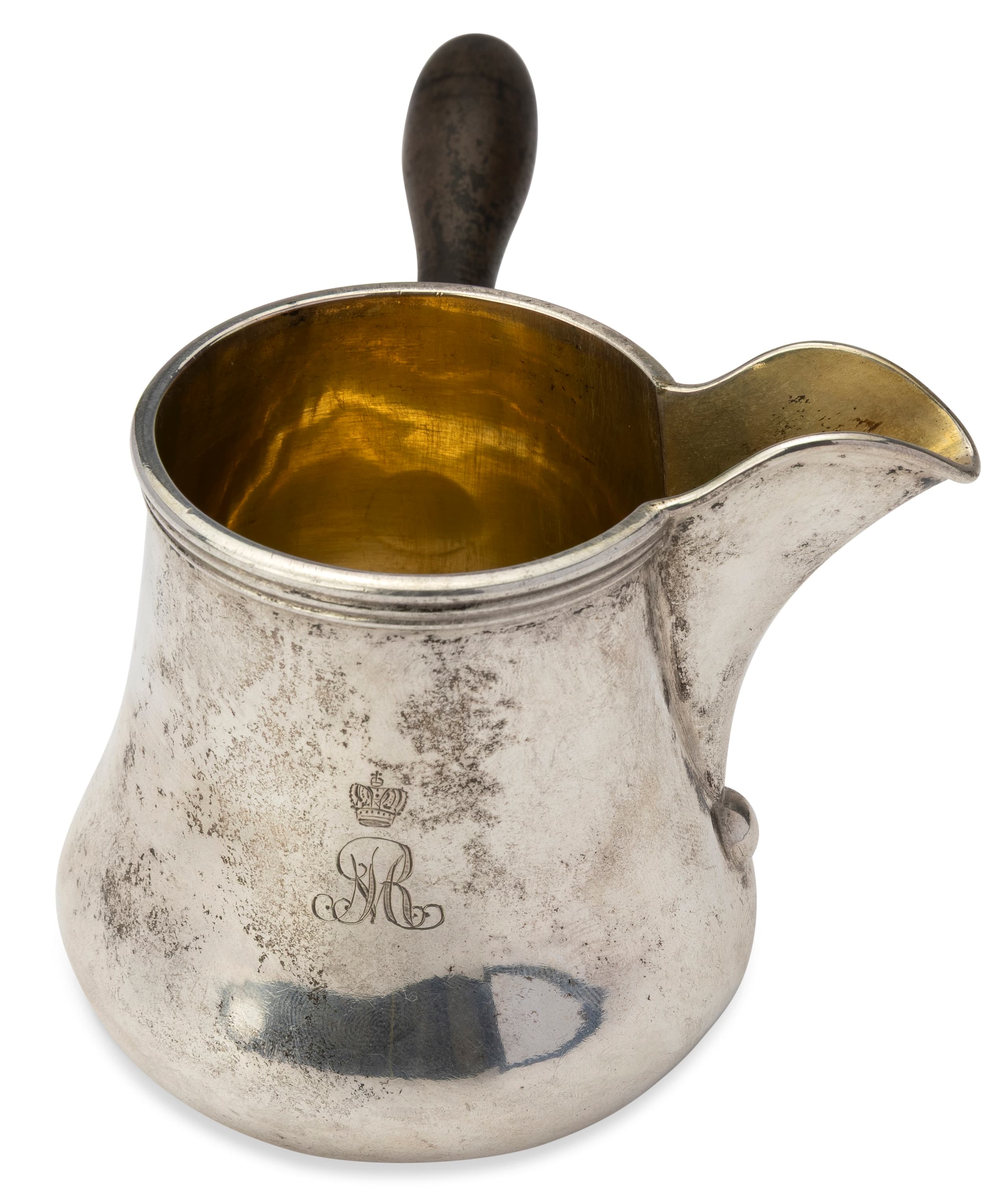 SILVER-GILT MILK JUG WITH WOOD HANDLE, WITH THE CYPHER OF MARY QUEEN OF HANOVER PRINCESS OF SAXE-ALTENBURG Ernst Friedrich Kemnis, 19th century