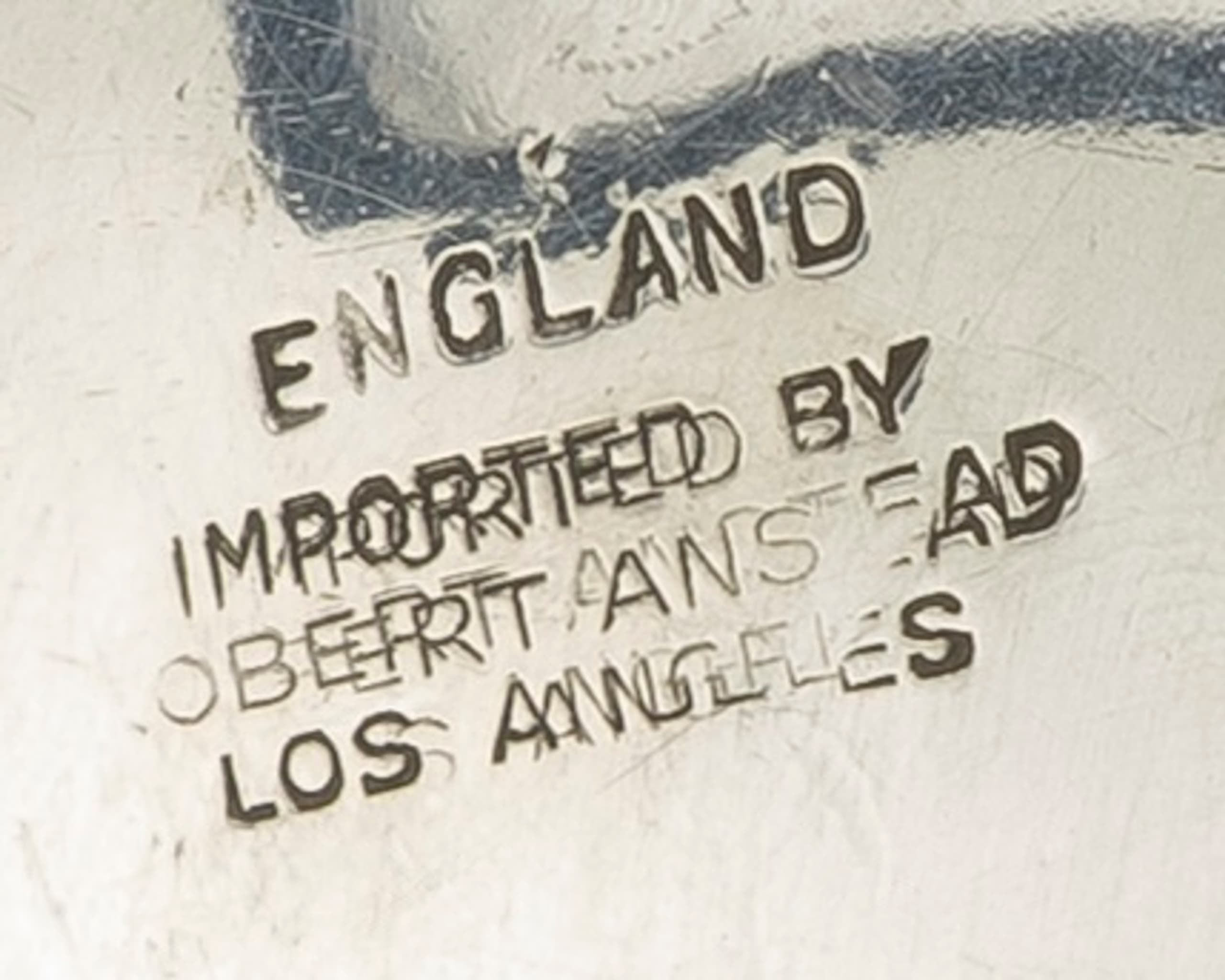 inscribed ‘ENGLAND /IMPORTED BY ROBERT ANSEAD/ LOS ANGELES’